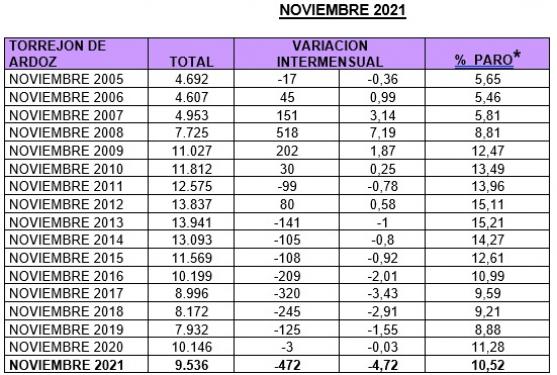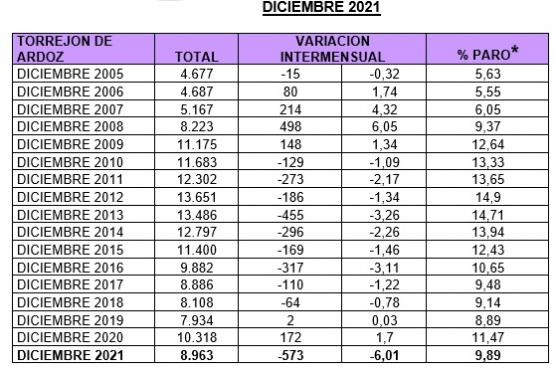 El desempleo en Torrejón de Ardoz registra por tercer mes consecutivo el mejor dato de la historia y 1.500 personas han encontrado empleo en la ciudad en los últimos tres meses. Así, en enero de 2022, un total de 400 vecinos dejando las listas de desempleo, siendo este mes el mejor de la serie histórica desde que se contabiliza el paro en la ciudad. Además, en noviembre de 2021 el número de desempleados en Torrejón bajó en 472 personas, y en diciembre de 2021 en 573, siendo también los mejores datos de la serie histórica, a lo que se suma que en octubre de 2021 la cifra de vecinos sin empleo se redujo en 134.