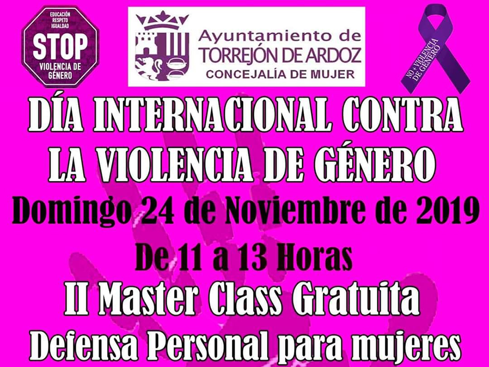 Torrejón de Ardoz, 21 de noviembre de 2019. El objetivo de esta Master Class que se celebrará en sesión única es sensibilizar a las mujeres a reconocer, prevenir y defenderse de las agresiones, aumentando la capacidad de protegerse y ejercer “el derecho a decir No”.