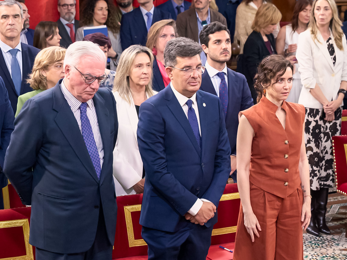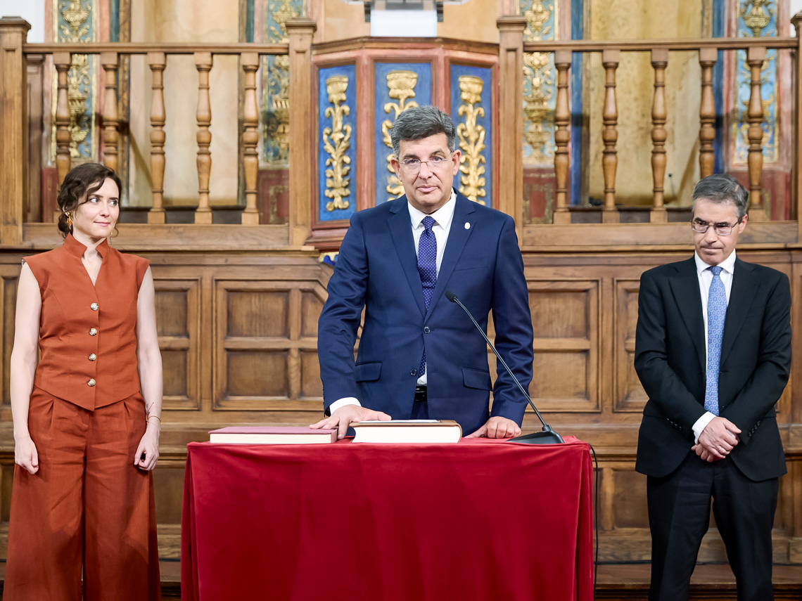 Carmelo García fue investido ayer rector de la Universidad de Alcalá, en un acto presidido por Isabel Díaz Ayuso, presidenta de la Comunidad de Madrid, al que asistió el alcalde de Torrejón de Ardoz, Alejandro Navarro Prieto, en una ceremonia solemne celebrada en el Paraninfo. El evento reunió a diferentes autoridades y representantes de la comunidad universitaria, como el Defensor del Pueblo, Ángel Gabilondo, el presidente de la Asamblea de Madrid, Enrique Ossorio; la consejera de Educación Ciencia y Universidades de la Comunidad de Madrid, Mercedes Zarzalejo; el consejero de Educación, Cultura y Deportes de la Junta de Comunidades de Castilla-La Mancha, Amador Pastor; y el director general de Universidades, Investigación e Innovación de dicha Región, José Antonio Castro Osma. Además, de las alcaldesas de Alcala de Henares, Judith Piquet, y Guadalajara, Ana Guarinos.