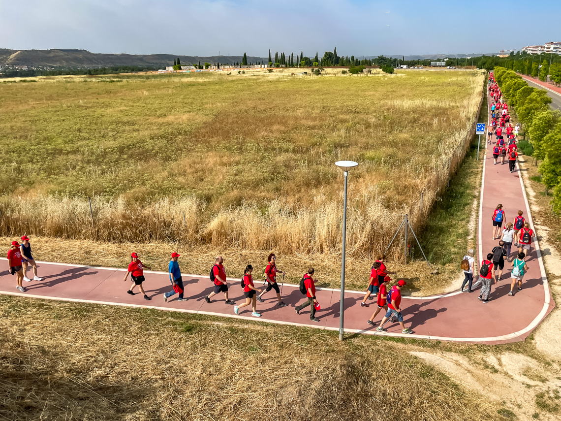 Torrejón de Ardoz, 17 de junio de 2025. En la llegada de la etapa, en la Plaza Mayor de Torrejón, se entregó a los senderistas bocadillos y fruta. Además, hubo actividades para todas las edades, principalmente para los más pequeños como pintacaras, globoflexia, fotomatón, un castillo hinchable y una sesión de DJ a cargo del joven Joel F. La participación de numerosas familias hizo bueno el lema del Camino: “¡Ven con tu familia y disfruta con los tuyos!