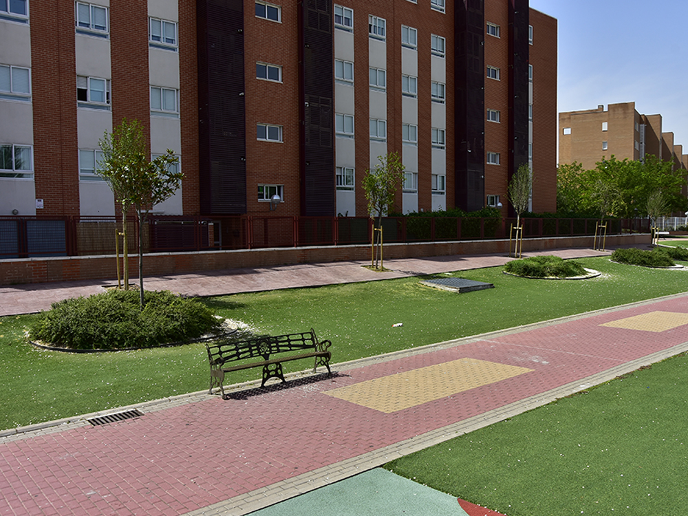 • Parque Canarias: se han pavimentado 220 metros cuadrados de caminos y zonas estanciales para evitar encharcamientos provocados por las lluvias. Se ha reforzado su vegetación con la plantación de 22 árboles y 70 arbustos, así como el resemillado de las praderas de césped. También se ha ampliado la red de riego existente para favorecer su mantenimiento.