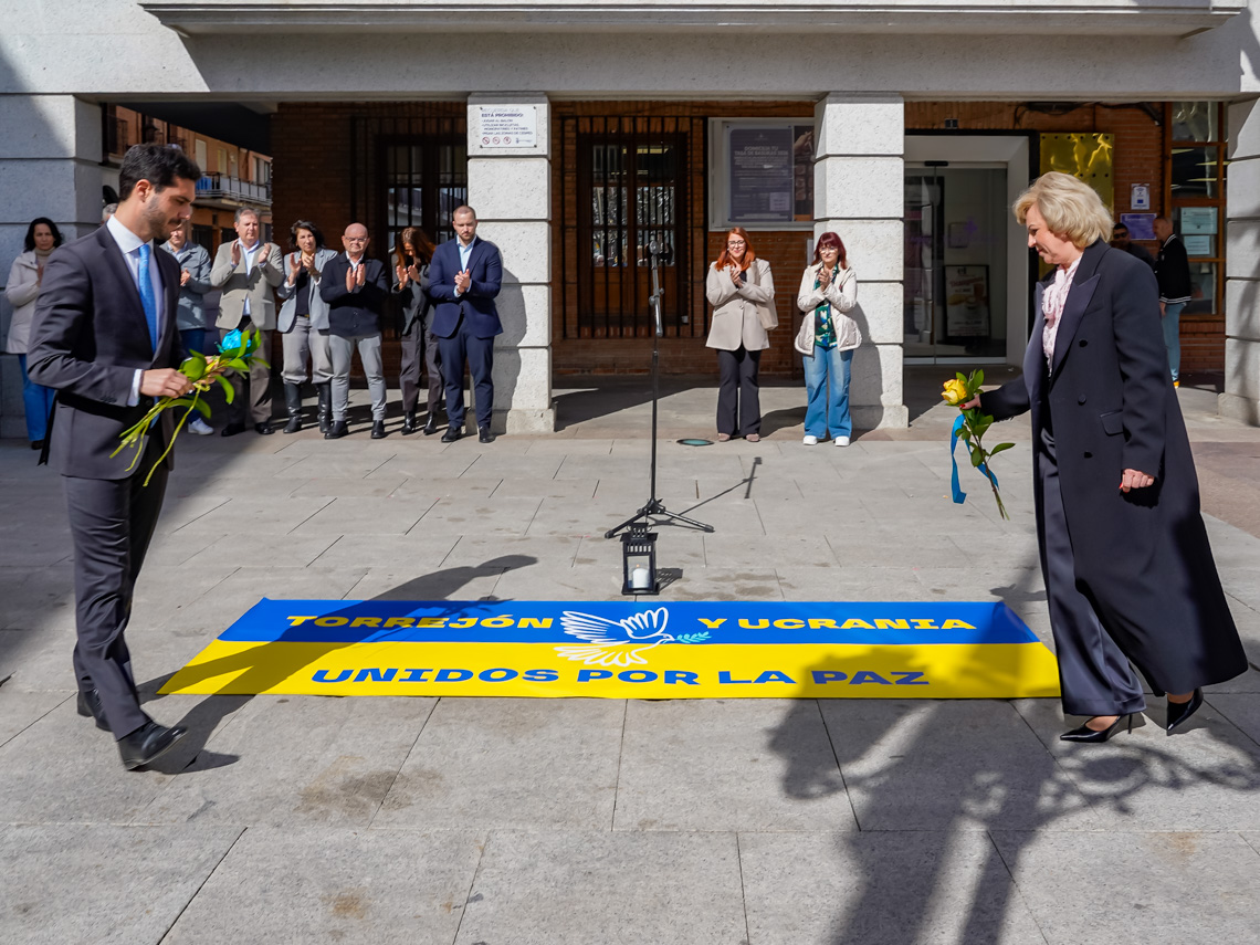El alcalde recordó que “desde Torrejón de Ardoz no nos hemos limitado a condenar esta salvaje agresión al pueblo ucraniano. Hemos impulsado numerosas iniciativas. Nos hemos volcado en la atención a los refugiados ucranianos llegados a la ciudad, especialmente de los niños en edad escolar, impartiendo clases de español, poniendo en marcha el Colegio Flores de Ucrania, en el que se imparten clases gratuitas de español y se ofrece formación docente acreditada por el Ministerio de Educación de Ucrania a los menores ucranianos de nuestra ciudad o el Servicio de Apoyo de interpretación para personas ucranianas”.