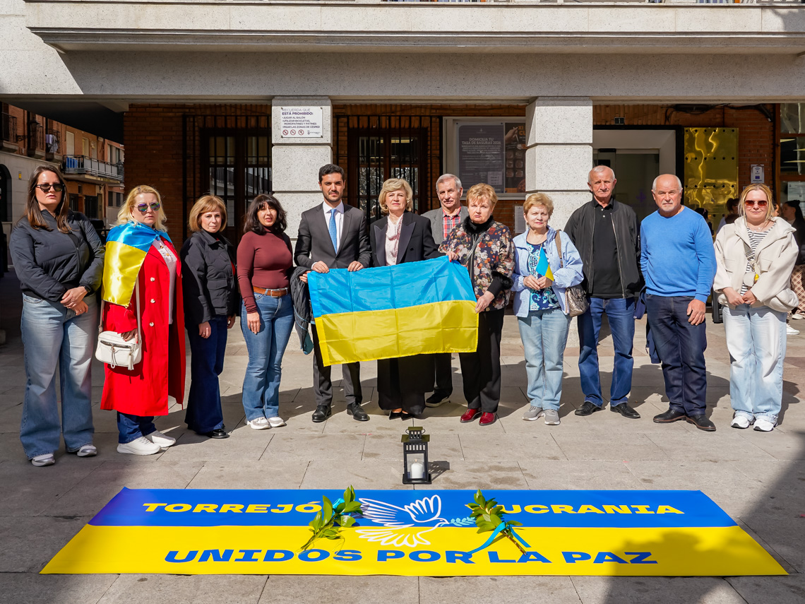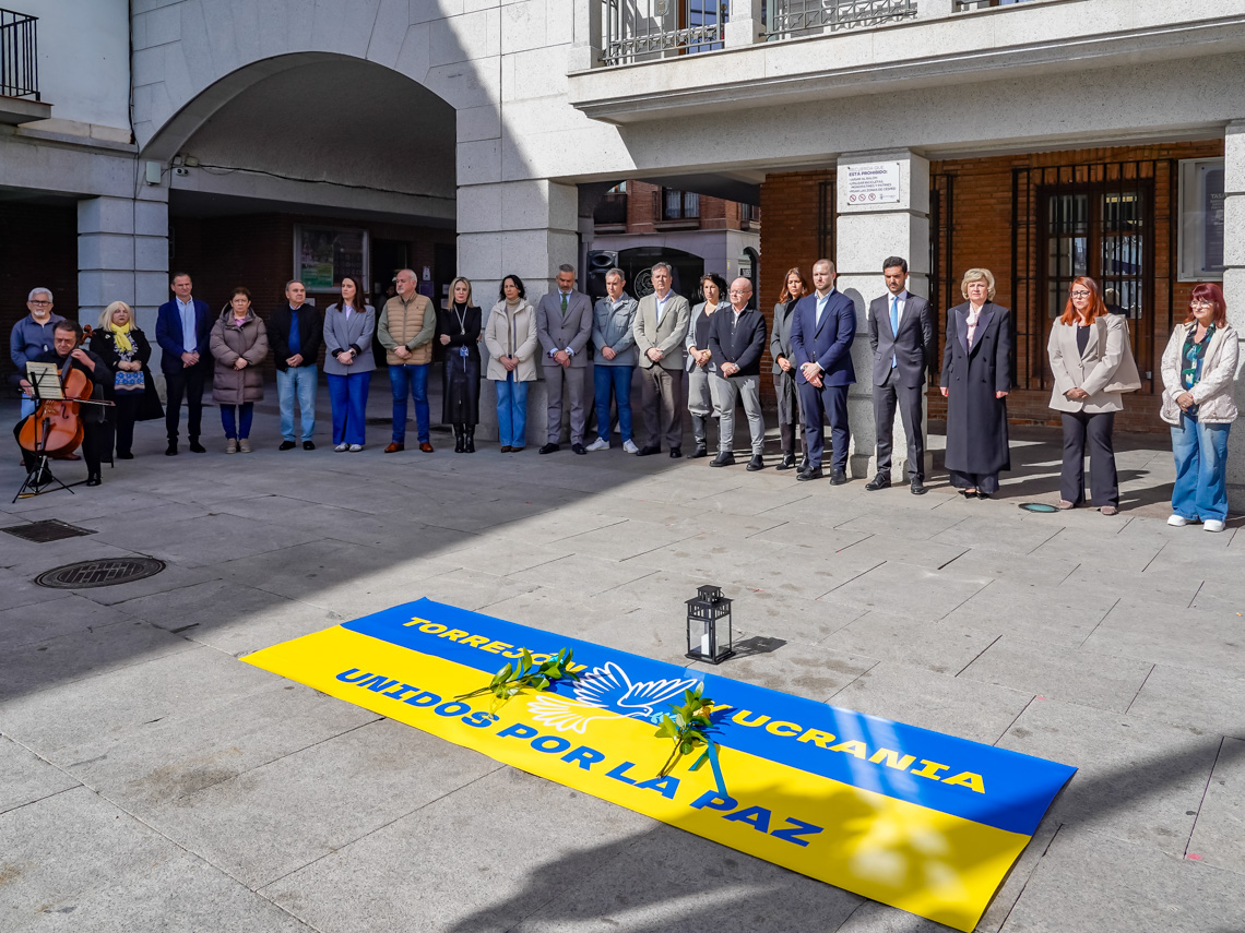 Cuatro años después del estallido de la guerra de Ucrania, Torrejón de Ardoz guarda un minuto de silencio como homenaje a las personas caídas luchando contra la invasión rusa