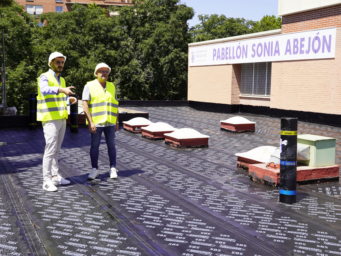 • En el Pabellón M4 -Sonia Abejón se están realizando trabajos integrales de reparación en las dos cubiertas que componen la instalación deportiva. Por un lado, se está arreglando la cubierta plana transitable en toda su superficie, que presentaba un estado muy deteriorado por el paso del tiempo, que ocasionaba goteras en vestuarios, aseos y oficinas. Se están retirando la grava, la antigua impermeabilización ya desgastada, para proceder a la construcción de una nueva cubierta con formaciones de pendiente, impermeabilizaciones y aislamientos, que garanticen una correcta estanqueidad, e impidan cualquier tipo de filtración a su interior. Además, se está reparando la cubierta metálica que cubre el pabellón de juego, sobre la que se está instalando otra sobre cubierta metálica, con nuevos canalones y bajantes que recogerán las aguas, evitando así las goteras. El presupuesto de esta importante inversión es de 302.902 euros