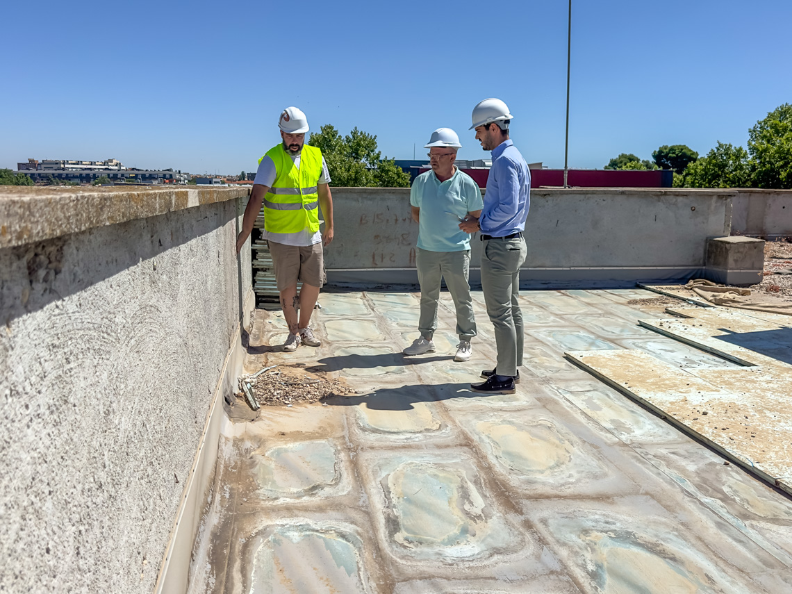El alcalde de Torrejón de Ardoz, Alejandro Navarro, y el primer teniente de alcalde, Valeriano Díaz, han visitado el colegio público Vicente Aleixandre donde se está trabajando en la reparación de la cubierta, para que esté lista cuando se inicie el curso escolar el próximo 9 de septiembre. Aprovechando el periodo estival, se está renovando la cubierta del centro educativo, para eliminar el problema de las goteras que tenía este centro y realizando trabajos de pintura para eliminar las humedades que éstas causaron.