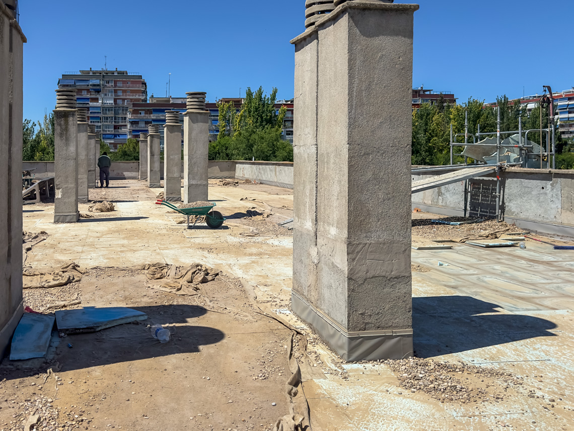 • Aprovechando el periodo estival, se está renovando la cubierta del CEIP Vicente Aleixandre, para eliminar el problema de las goteras que tenía este centro y realizando trabajos de pintura para eliminar las humedades que éstas causaron