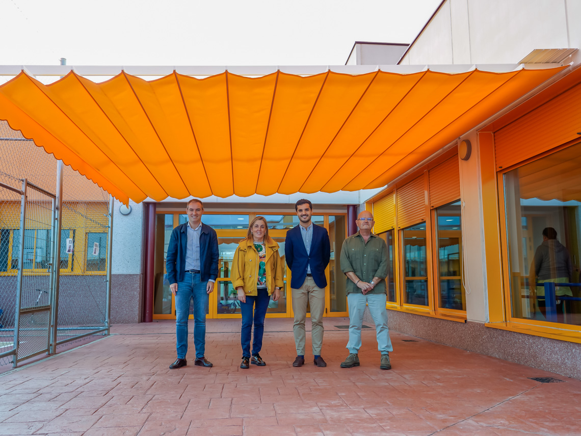 El Ayuntamiento de Torrejón de Ardoz ha instalado una pérgola con toldo en el Colegio público de Educación Especial Iker Casillas que permita regular la temperatura de esta zona del centro educativo. El alcalde. Alejandro Navarro, el concejal de Obras, Limpieza Urbana, Administración y Contratación, Valeriano Díaz, y el edil de Bienestar, Educación e Inmigración, Rubén Martínez, han presentado esta mañana la nueva inversión en un centro educativo de la ciudad, acompañados de la directora del colegio, Regina Rico.