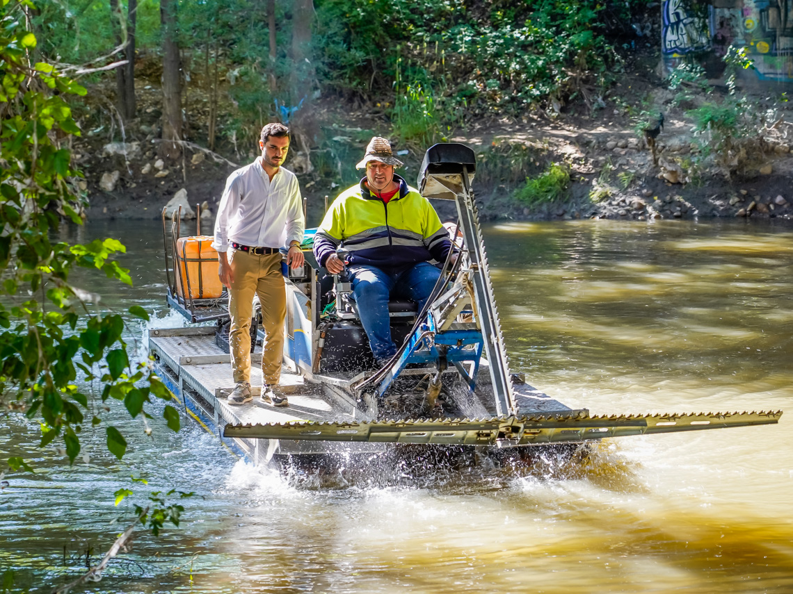 El Ayuntamiento de Torrejón de Ardoz lucha contra los mosquitos y la mosca negra con el barco anfibio que retira las plantas acuáticas del río Henares donde se encuentran la mayoría de las larvas