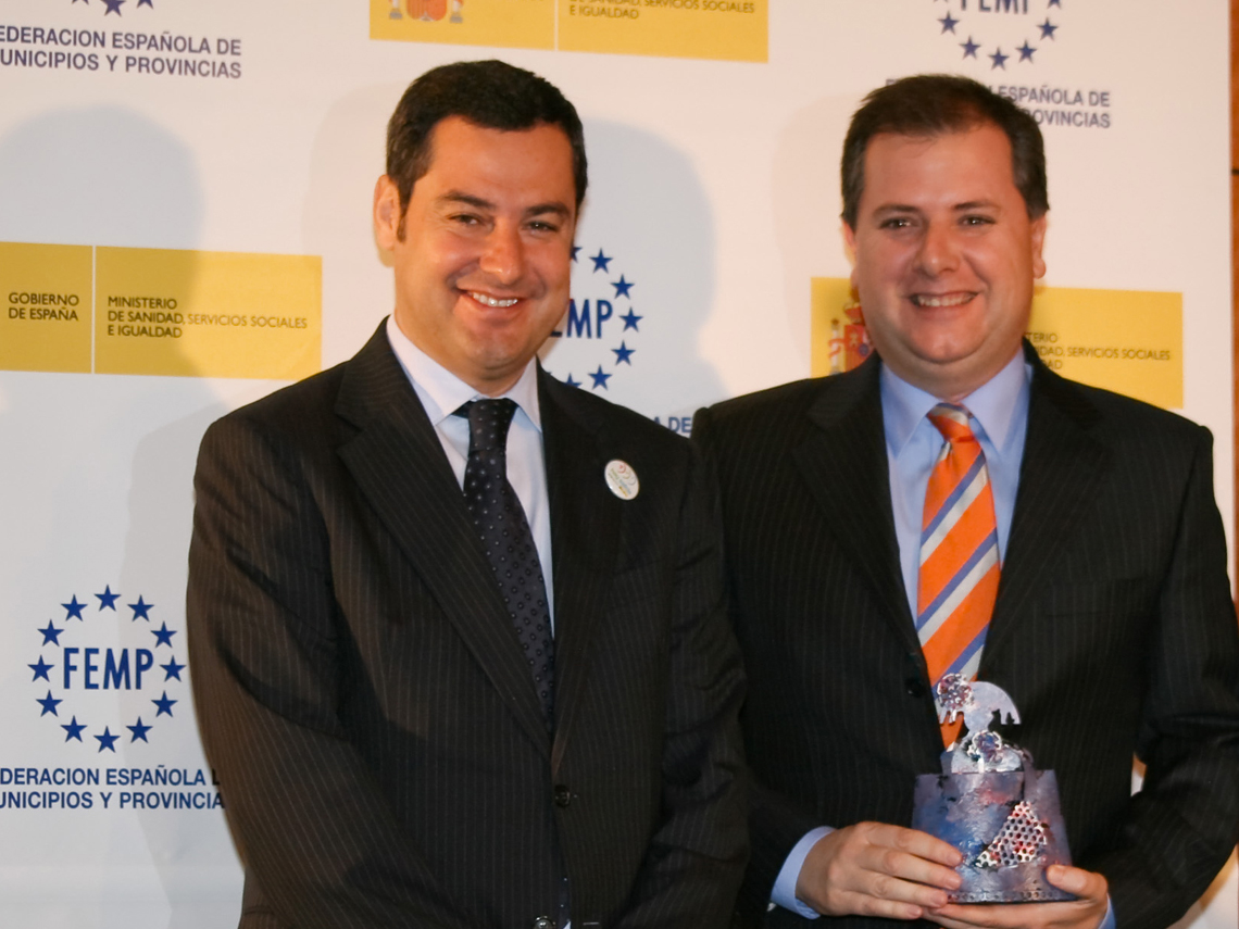 • El Ayuntamiento de Torrejón de Ardoz ya recibió en 2013 el premio del Ministerio de Sanidad, Servicios Sociales e Igualdad del Gobierno España por su “Atención y apoyo a las mujeres víctimas de violencia” con la iniciativa “Protección, apoyo, atención y acompañamiento las 24 horas del día a mujeres víctimas de violencia de género a través de dispositivos móviles”, galardón que entregó el entonces secretario de Estado y actual presidente de la Junta de Andalucía, Juan Manuel Moreno, al vicealcalde, José Luis Navarro