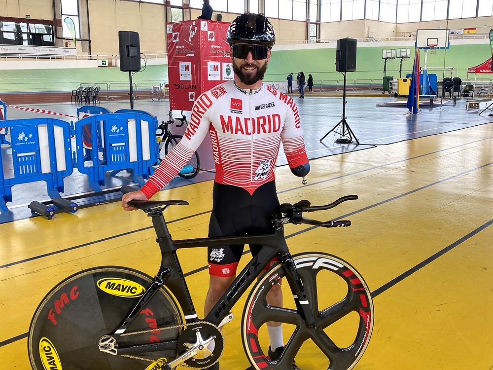 El ciclista torrejonero Christian Silva, amputado de su brazo izquierdo, medalla de bronce por equipos en el Campeonato de España de ciclismo adaptado en pista