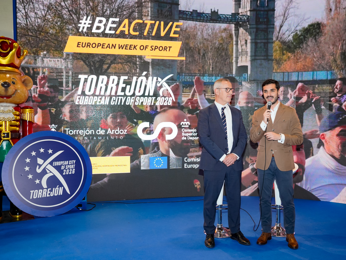 Torrejón de Ardoz, 27 de enero de 2026. El alcalde de Torrejón de Ardoz, Alejandro Navarro, anunció junto al subdirector adjunto y responsable de Relaciones Internacionales del Consejo Superior de Deportes (CSD), Juan Martorell, y la concejala de Deportes y Turismo, Miriam Gutiérrez, que la ciudad iba a acoger los actos centrales de la Semana Europea del Deporte 2026 que tendrán lugar del 23 al 30 de septiembre. Entre las actividades destaca la conocida como BeActive Night. Durante la jornada del sábado, 26 de septiembre, se desplegarán en el Parque Europa distintas instalaciones, actividades deportivas y master class gratuitas, al aire libre y dirigidas a todos los públicos, además de los actos institucionales.