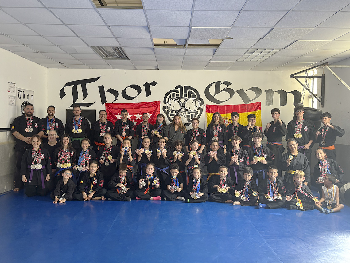 Torrejón de Ardoz, 9 de junio de 2025. El equipo encabezado por la cinco veces campeona del mundo de defensa personal, Cristina Álvarez, y su hija, Kristhyna Caballero, recientemente campeona de la Copa del Mundo en katas por equipos, participó con 42 competidores que se subieron al podio en 84 ocasiones, logrando 32 medallas de oro, 29 de plata y 23 de bronce. Destacaron las tres medallas de oro de Kristhyna Caballero en cinturón negro, otros tres oros para Jorge González y Ruth Ortega en cinturón azul/verde y los cuatros oros logrados por la joven Noa García en categoría infantil (9-10 años).