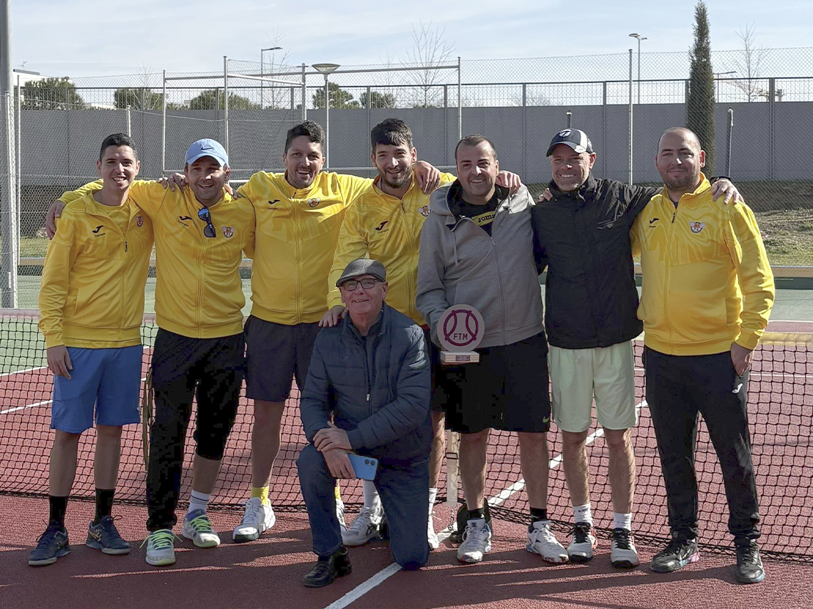 Torrejón de Ardoz, 28 de febrero de 2025. El equipo +35 del Club de Tenis Torrejón, capitaneado por Víctor Vera y formado por Alejandro de la Vega, Alejandro Martínez, Iván Pereira, Óscar Luján, Alberto Madroñero, Cristian Stan, Enrique Rodríguez y Carlos Santaella consiguió la victoria en el Campeonato de Madrid ganando en la final a Mirasierra por 5-1.