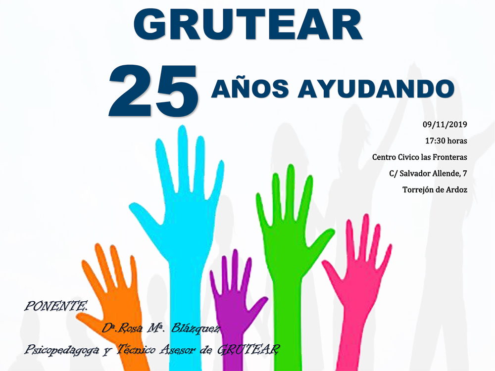 • Así, mañana sábado 9 de noviembre a partir de las 17:30 horas en el Centro Cultural Las Fronteras tendrán lugar las XX Jornadas informativas, que contarán con una ponencia a cargo de la psicopedagoga y técnico asesor de Grutear, Rosa María Blázquez