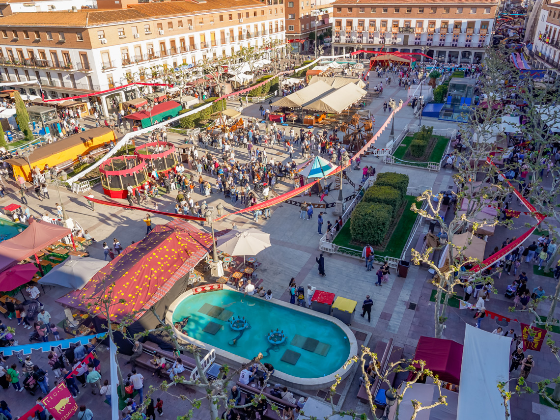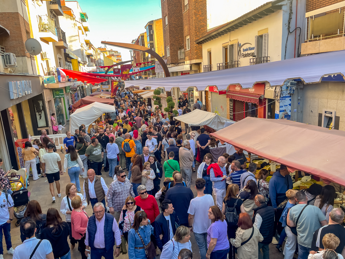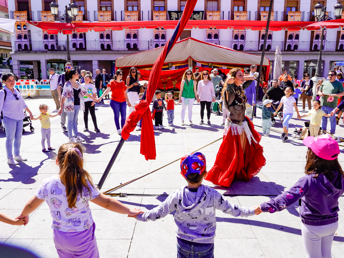 Torrejón de Ardoz, 30 de abril de 2025. Torrejón de Ardoz se engalanó para convertir el centro de la ciudad en una auténtica villa romana. En total fueron más de 7.000 metros cuadrados de mercado con calles llenas de vida, puestos con artesanías y sabores tradicionales y personajes vestidos con trajes de la época. Además, para lograr la máxima ambientación posible en esta época, se decoraron con diferentes estandartes y adornos los balcones de la Plaza Mayor y de las calles aledañas.