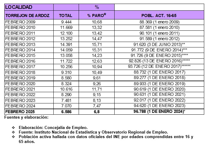 • Torrejón ha terminado el mes de febrero de este año con un total de 6.586 personas desempleadas, frente a las 14.391 que tenía en febrero de 2013, reduciéndose a más de la mitad el número de desempleados en la ciudad