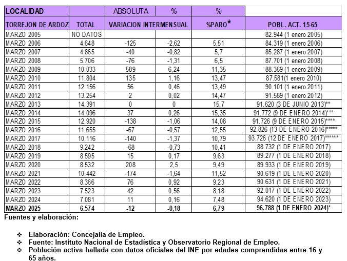 • El paro en Torrejón de Ardoz se situó en marzo con la menor tasa de desempleo en este mes desde hace 17 años, situándose en el 6,79%