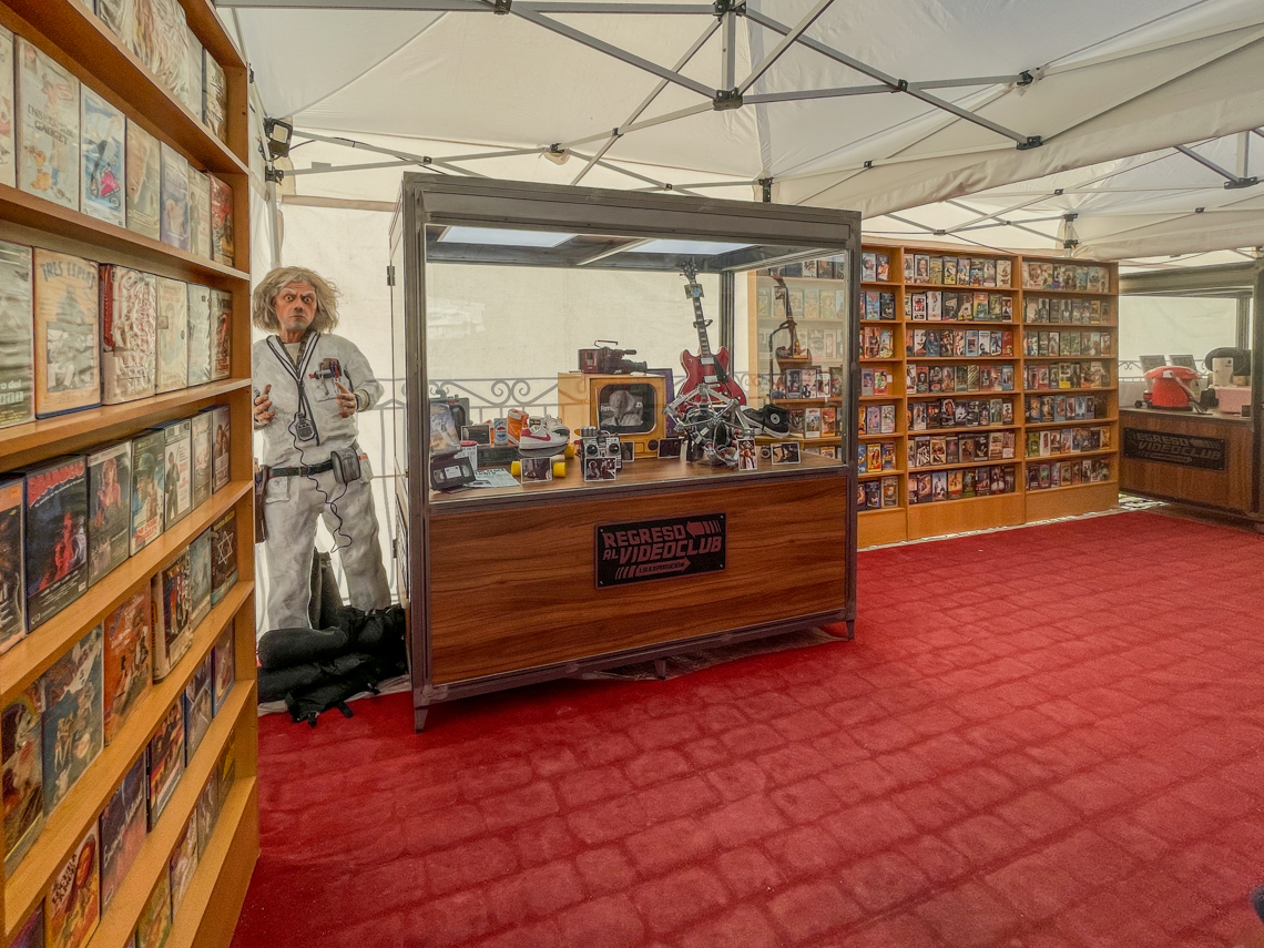 Torrejón de Ardoz, 12 de septiembre de 2025. “Torrejón regresa al Futuro” muestra a escala 1:1 figuras y vehículos de las películas más míticas de las décadas de los 80 y 90 y que se usaban para promocionar estas producciones cinematográficas en los videoclubs y cines de la época. Así, hay desde personajes de Star Wars, como el impresionante Jabba el Hutt, hasta el jeep de Jurassic Park o el Delorean de Regreso al Futuro, además de figuras, como Batman, El Cuervo o Chuky.