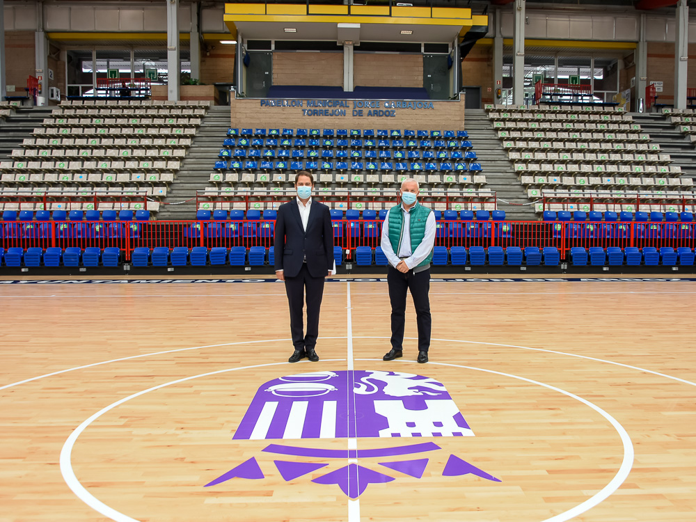El alcalde de Torrejón de Ardoz, Ignacio Vázquez, y el concejal de Deportes y Movilidad, José Miguel Martín Criado, han presentado esta mañana en el Pabellón Municipal Jorge Garbajosa la 5ª fase del Plan de Adecuación y Mejora de Instalaciones Deportivas permite renovar la tarima de los pabellones Jorge Garbajosa, José Antonio Paraíso y Nuria Fernández e instalar porterías antivuelco en todos los pabellones.
