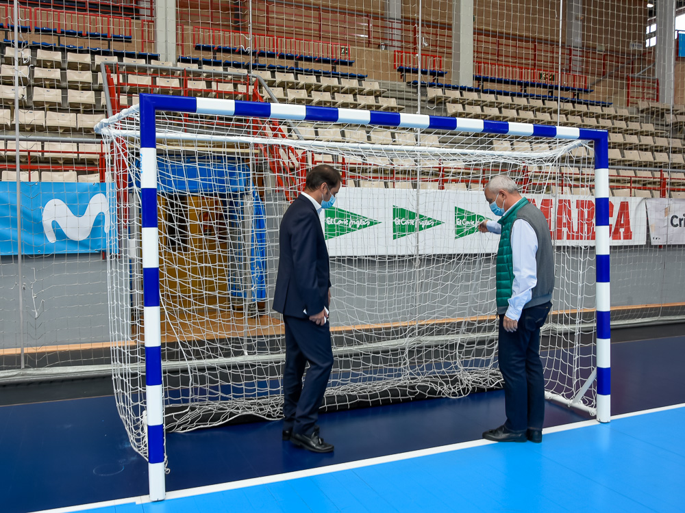 -Instalación de porterías en todos los pabellones, incluido Javier Limones y Sonia Abejón, con sistema antivuelco a través de contrapesos de material elástico situados en el arquillo inferior, con la finalidad de aumentar la estabilidad frente al vuelco de la portería.