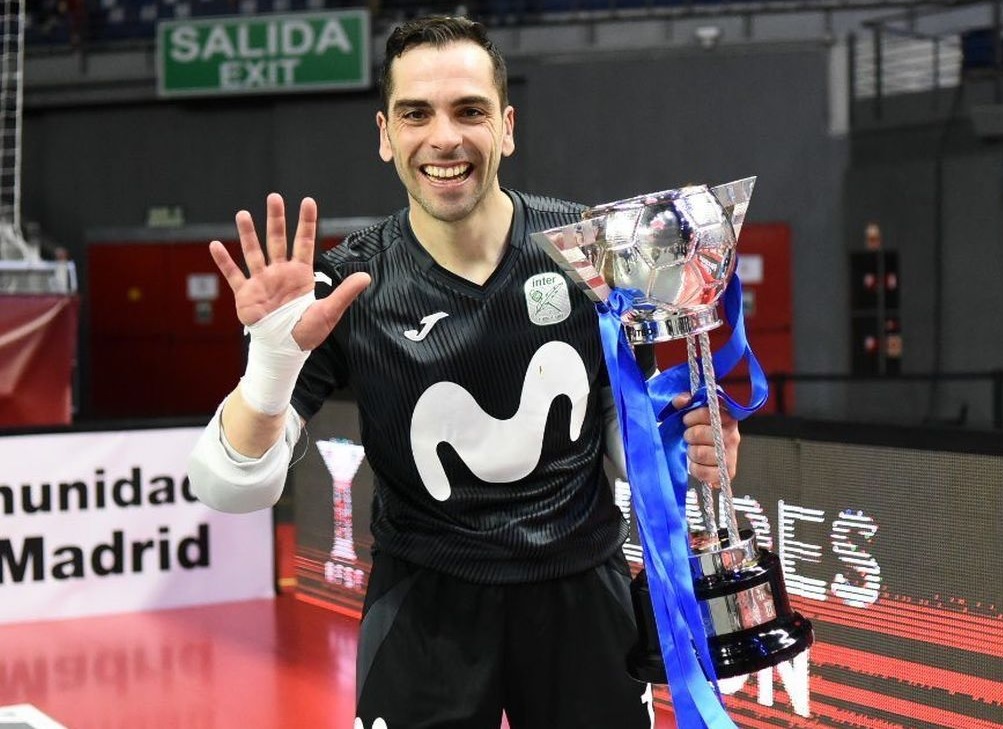 Torrejón de Ardoz, 31 de mayo de 2021. En todos estos años, después de dos cesiones a OID Talavera y Caja Segovia, Jesús Herrero ha ganado numerosos títulos con Movistar Inter como 3 Champions, 6 ligas, 5 Copas de España, 5 Supercopas y 2 Copas del Rey. Con la selección española ha sido campeón de Europa en el año 2016. Además, en el año 2017 fue elegido tercer Mejor Portero del Mundo y en 2018 quedó en segundo lugar en los Futsal Planet Awards.