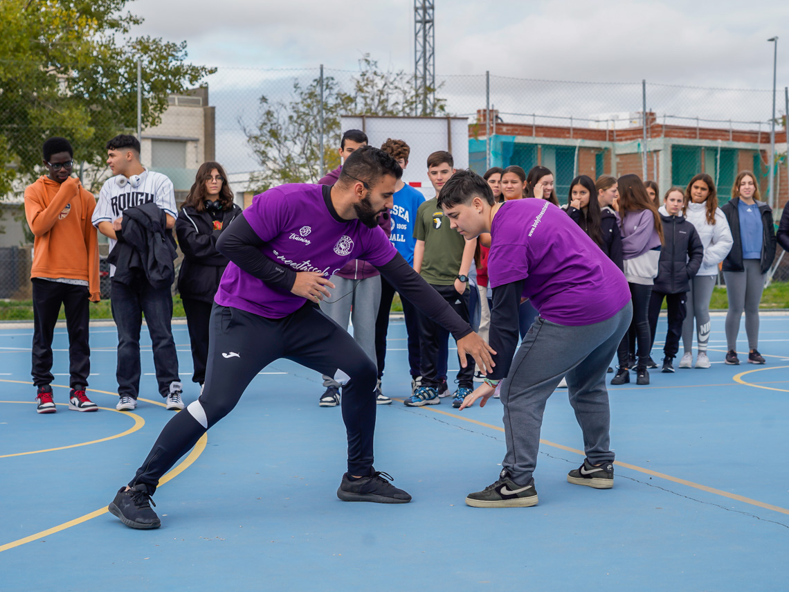 Con motivo del Día Internacional contra la violencia de género, que tendrá lugar el próximo 25 de noviembre, el Ayuntamiento de Torrejón de Ardoz, a través de su Concejalía de Igualdad, ha organizado una serie de actividades con el objetivo de sensibilizar y dar visibilidad a un problema social como es la violencia de género. Entre ellas, cabe destacar las que se están llevando a cabo en los diferentes centros educativos de la ciudad durante este mes de noviembre, como las masters class de defensa personal dirigidas al alumnado de la ESO con el objetivo de sensibilizar y dar visibilidad a un problema social como es la violencia de género. Así, el torrejonero, Víctor García, campeón de España de Defensa Personal Policial, cinturón negro 5º Dan de Karate y especialista en defensa personal femenina, acompañado de un equipo mixto de profesionales en esta modalidad, impartirá una Master Class en diferentes colegios e institutos de la ciudad encaminada a enseñar diversas técnicas de autodefensa femenina enfocadas principalmente a posibles agresiones, así como técnicas de prevención, colaboración y ayuda a las víctimas de una agresión.