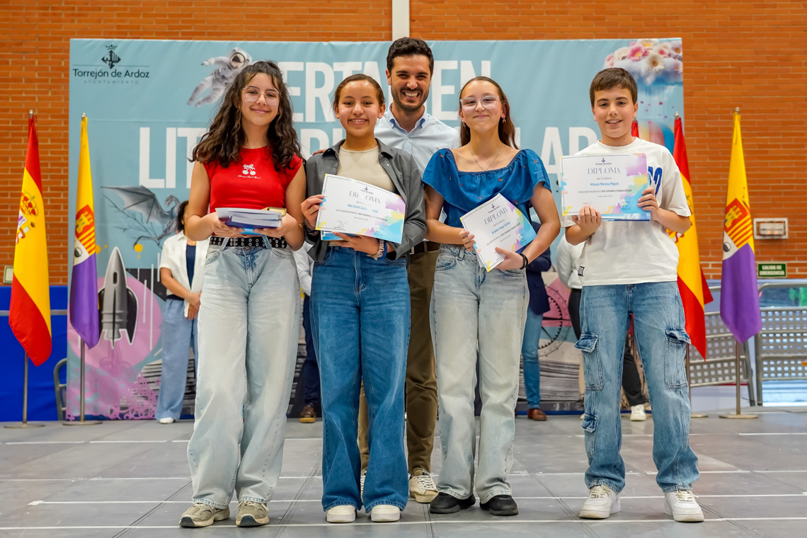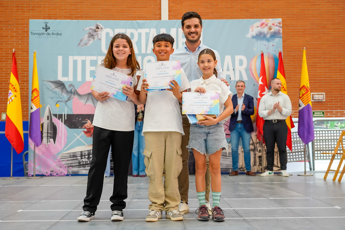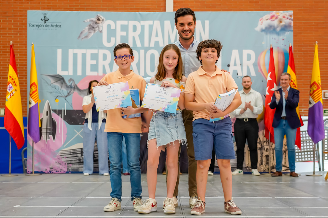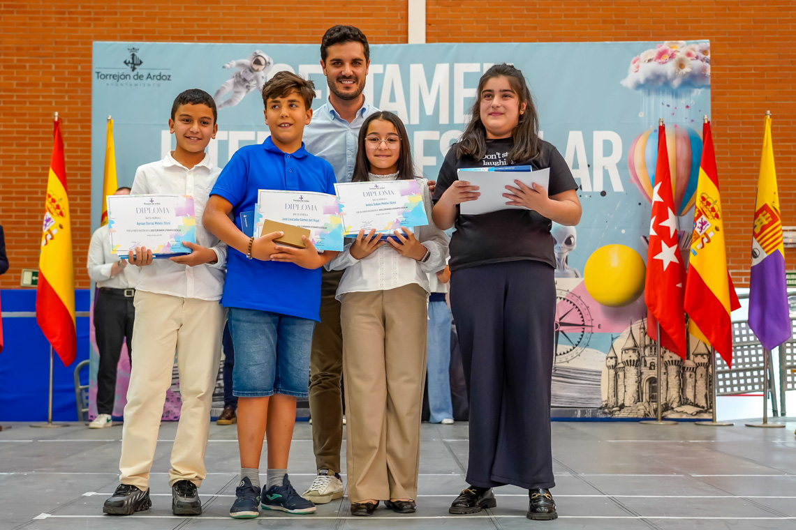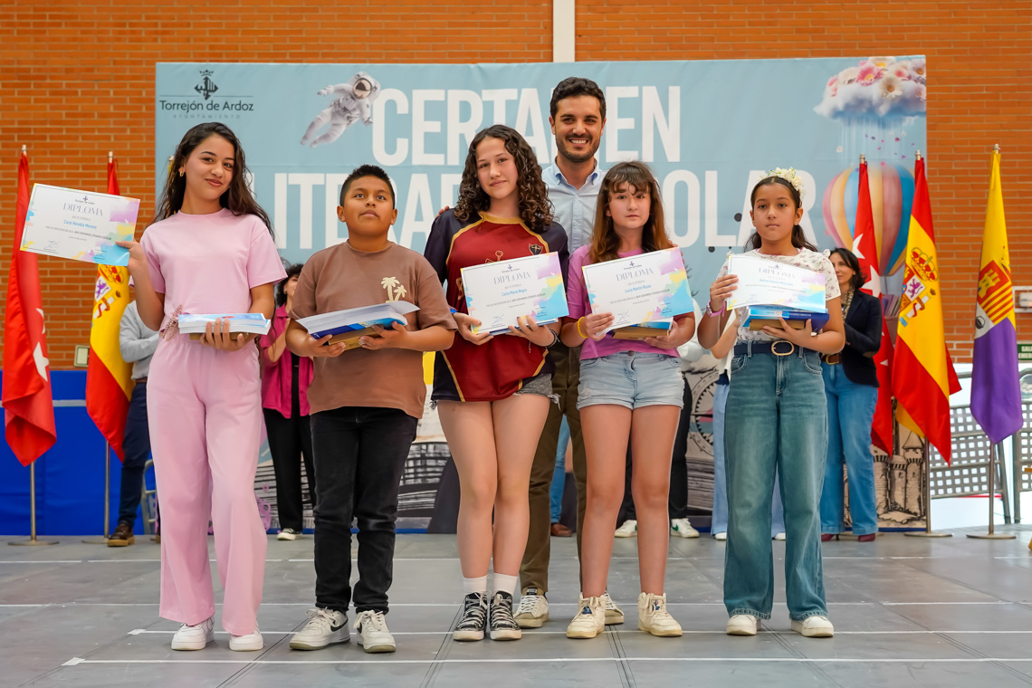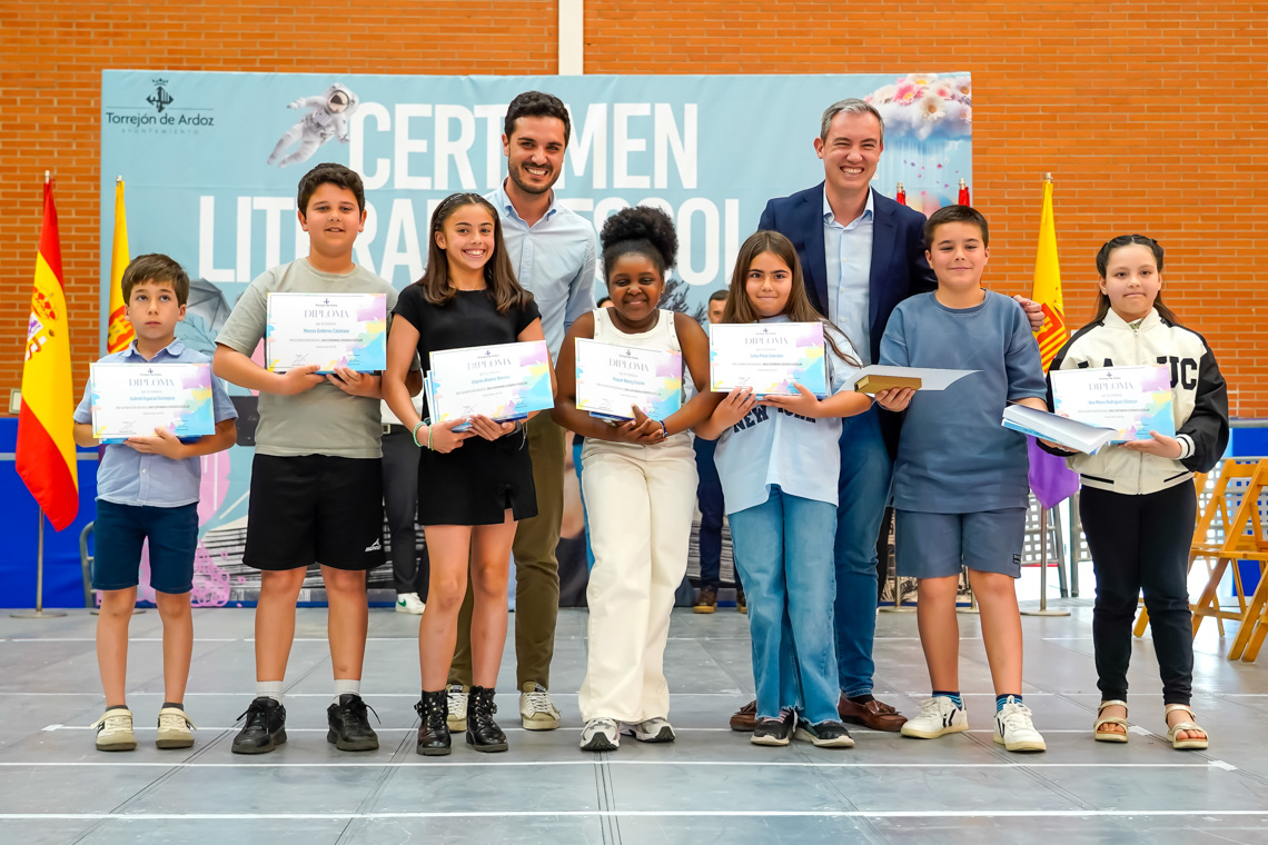 Un total de 6.073 alumnos de 25 centros educativos de la ciudad han participado en la XXVI edición del Certamen Literario Escolar. De todos los textos escritos, se han elegido los 285 mejores trabajos, 140 poesías y 145 relatos cortos, que son los que forman parte de los dos libros que la Concejalía de Educación del Ayuntamiento de Torrejón de Ardoz ha editado con motivo del certamen. Asimismo, se premió a los 12 centros educativos que registraron un 100% de participación entre su alumnado.