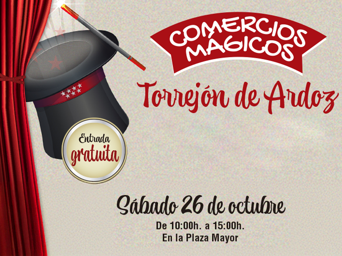 Este sábado, 26 de octubre, llegan los “Comercios Mágicos” a la Plaza Mayor de Torrejón de Ardoz, un espacio tematizado que recrea, a pequeña escala y de forma imaginativa, un rincón de cualquier barrio con juegos, animación, concursos y regalos para toda la familia. Se trata de una iniciativa de la Comunidad de Madrid, que cuenta con el apoyo del Consistorio torrejonero, cuyo objetivo es promocionar el comercio local, atrayendo a potenciales clientes, dinamizando las ventas de las tiendas e incrementando el consumo en los establecimientos de la zona. Desde las 10:00 hasta las 15:00 horas habrá diferentes propuestas para todas las edades, además de actividades intergeneracionales en las que los más mayores, podrán compartir juegos y diversión con los más pequeños. Más información: www.comerciosmagicos.com