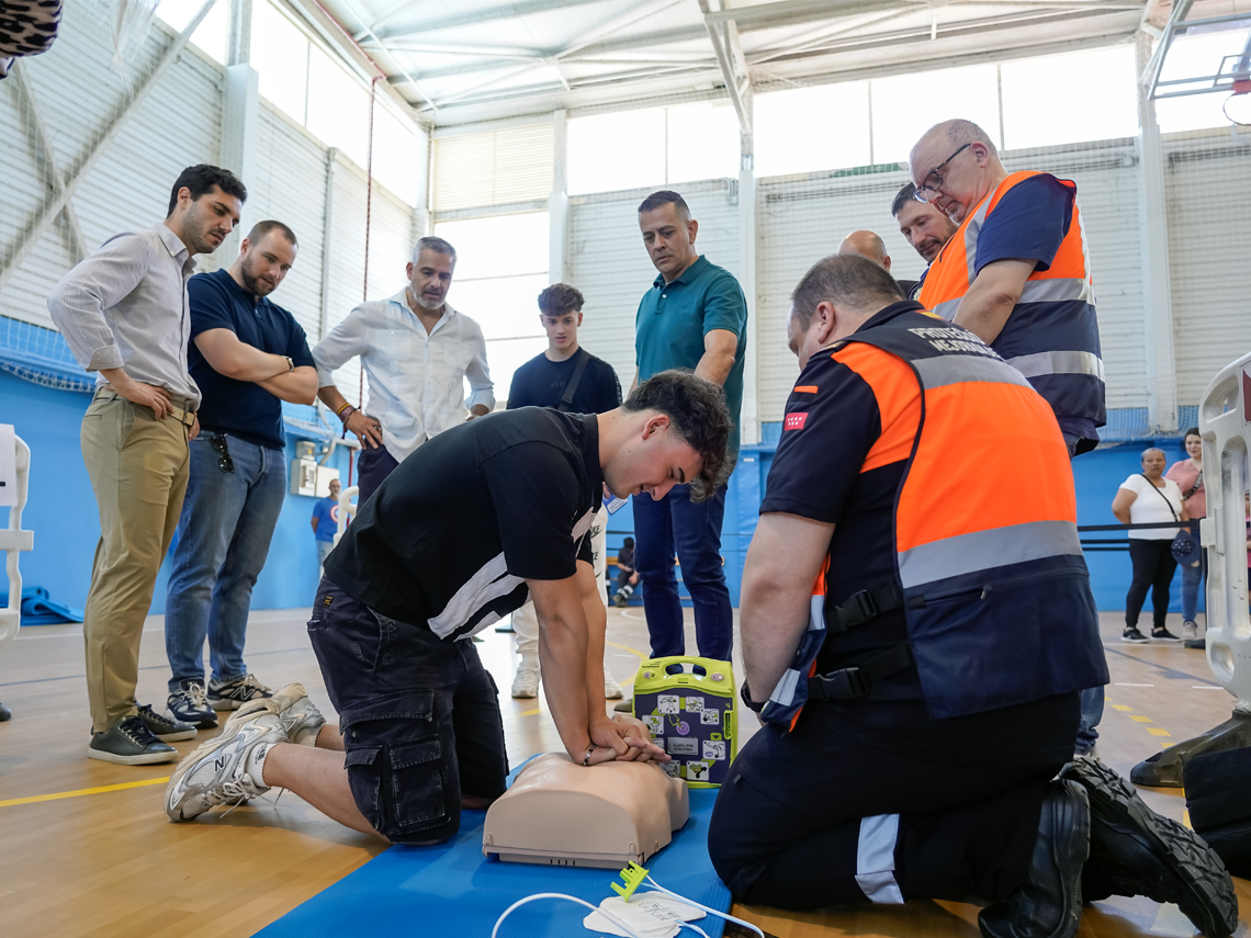 • El Ayuntamiento de Torrejón de Ardoz celebró esta Máster Class en el Pabellón Nuria Fernández (Ciudad Deportiva Joaquín Blume) con el objetivo de enseñar técnicas esenciales de reanimación cardiopulmonar, uso de desfibriladores, control de hemorragias y actuación ante atragantamientos impartidas por personal sanitario cualificado.
