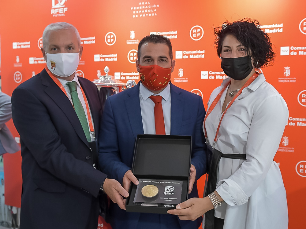 La Real Federación Española de Fútbol quiso reconocer el trabajo de la Concejalía de Deportes y el vicepresidente de la RFEF y presidente del Comité Nacional de Fútbol Sala, Pablo Lozano, dio una placa al concejal de Deportes José Miguel Martín Criado, y a la concejala de Mujer, Miriam Gutiérrez, que estuvieron presentes en la entrega de trofeos.