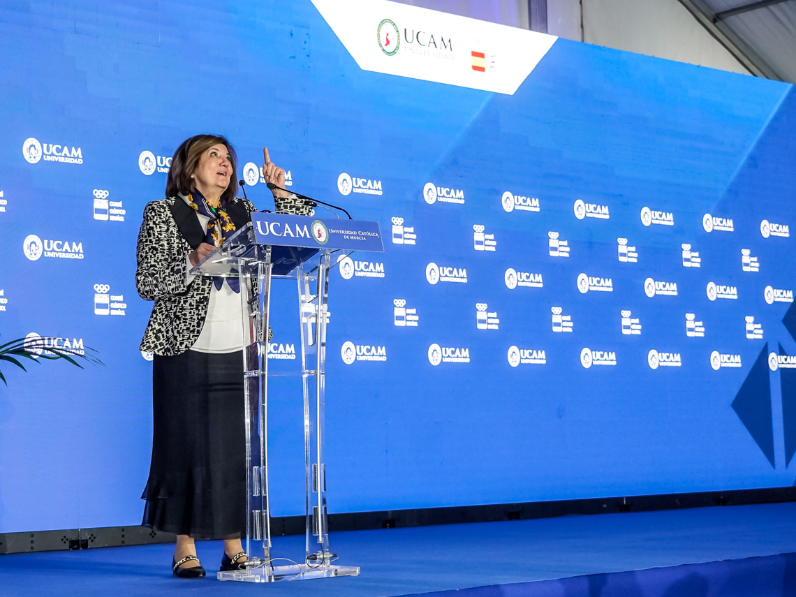“Con este nuevo campus especializado en la nutrición, el deporte y la salud, en el que convivirán la educación, la investigación y el espíritu deportivo, y en el que apostaremos por la excelencia académica, la internacionalización, el deporte como forma de vida, los valores olímpicos y la innovación, un proyecto que se sustenta en valores fundamentales como el trabajo, el equipo, la superación y el esfuerzo que representa este Centro de Estudios Superiores Alma Mater UCAM-COE en el que hemos invertido 20 millones de euros, generando empleo a más de 200 personas en su primera fase y constituyendo un polo de atracción internacional a nivel docente e investigador”, aseguró Maria Dolores García Masscarell, presidenta de la UCAM.