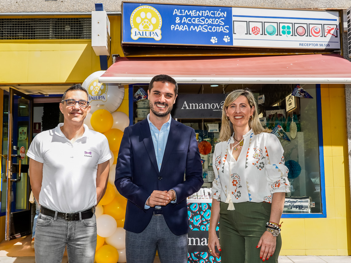 Jalupa, establecimiento de alimentación y complementos para animales, cumple siete años en Torrejón de Ardoz. ofreciendo todo lo necesario para las mascotas de sus clientes. El alcalde, Alejandro Navarro Prieto, visitó sus instalaciones, situadas en el número 22 de la Plaza Europa, junto a su propietaria, Belén Marcellán, y que han creado dos puestos de trabajo. En este sentido, la presencia del regidor torrejonero se enmarca dentro del apoyo institucional que realiza el Gobierno local a las diferentes empresas ubicadas en el término municipal de Torrejón.