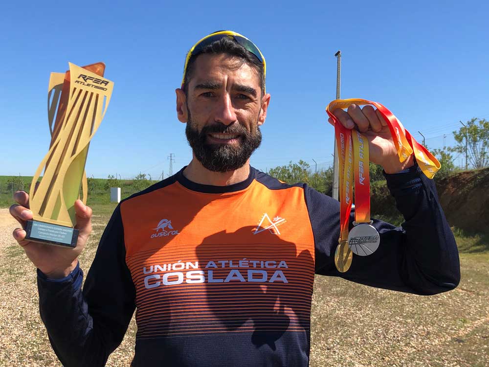 Torrejón de Ardoz, 16 de marzo de 2021. El campeonato se disputó este domingo 14 de marzo en la localidad cordobesa de Almodóvar del Río, teniendo que recorrer una distancia de 6 kilómetros en un circuito muy duro, con continuas cuestas, curvas cerradas y suelo inestable de surcos y bacheado, sumándole el fuerte viento que hizo. Juan José Crespo terminó la prueba con un tiempo de 19’30”, solo cuatro segundos por detrás del ganador, Manuel Carlos Outón. La medalla de plata individual se une al oro que se colgó por equipos con el A.D. Marathon. La actuación de Crespo fue decisiva para este primer puesto.