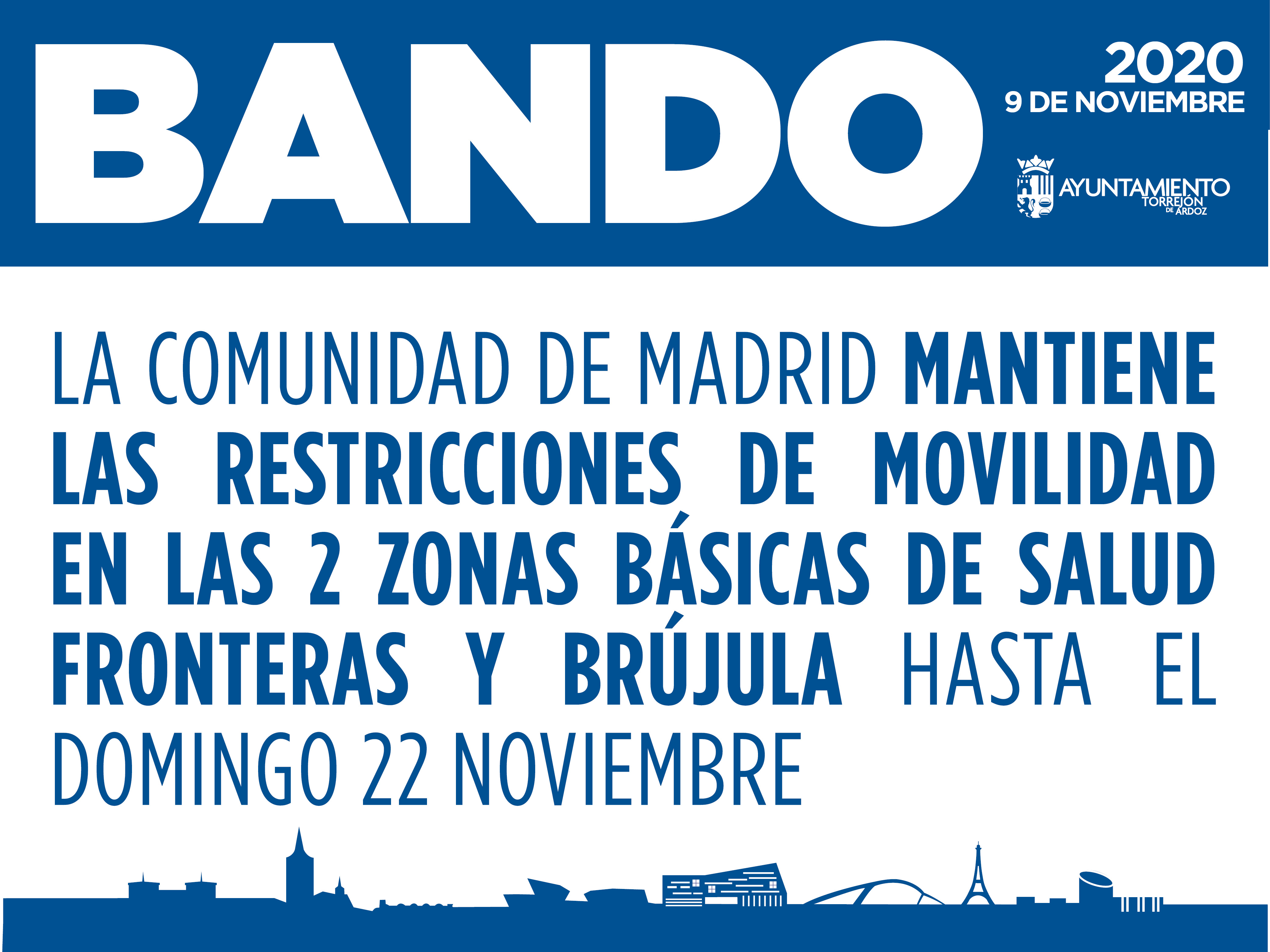 La Comunidad de Madrid mantiene las restricciones de movilidad en las dos Zonas Básicas de Salud de Fronteras y Brújula hasta el domingo 22 de noviembre