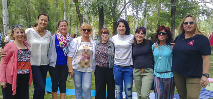 Las mujeres tomaron ayer el Parque Las Veredillas con la celebración de la fiesta de fin de curso que el Ayuntamiento de Torrejón, a través de su Concejalía de la Mujer, organiza después de un año de intenso trabajo. Una iniciativa en la que los asistentes pudieron disfrutar de diferentes actividades, como la presentación del Punto Violeta “No es no”, una comida, un taller de yoga, un cuentacuentos, las muestras de los talleres de autodefensa y “Mi cuerpo” ejercicios de relajación visual. La cita contó además con la participación de las asociaciones de mujeres de la ciudad y con la presencia de la concejala de Mujer, Dolores Navarro, la edil de Mayores, Ana Verónica González, la campeona europea de boxeo, Miriam Gutiérrez y la tres veces campeona del mundo de defensa personal, Cristina Álvarez.