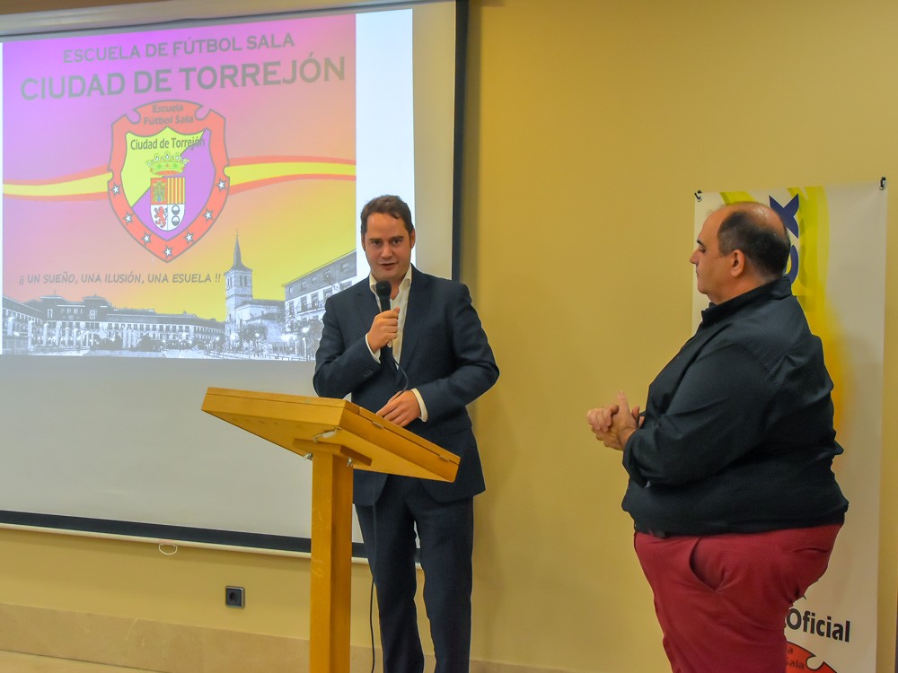 El alcalde de Torrejón de Ardoz, Ignacio Vázquez y el concejal de Deportes, Movilidad y Protección Civil, José Miguel Martín Criado, acudieron a la presentación del equipo senior de la Escuela de Fútbol Sala Ciudad de Torrejón, junto a su presidente, Pablo Baviano. La cita tuvo lugar el pasado 19 de septiembre en el Hotel Avant de Torrejón de Ardoz.