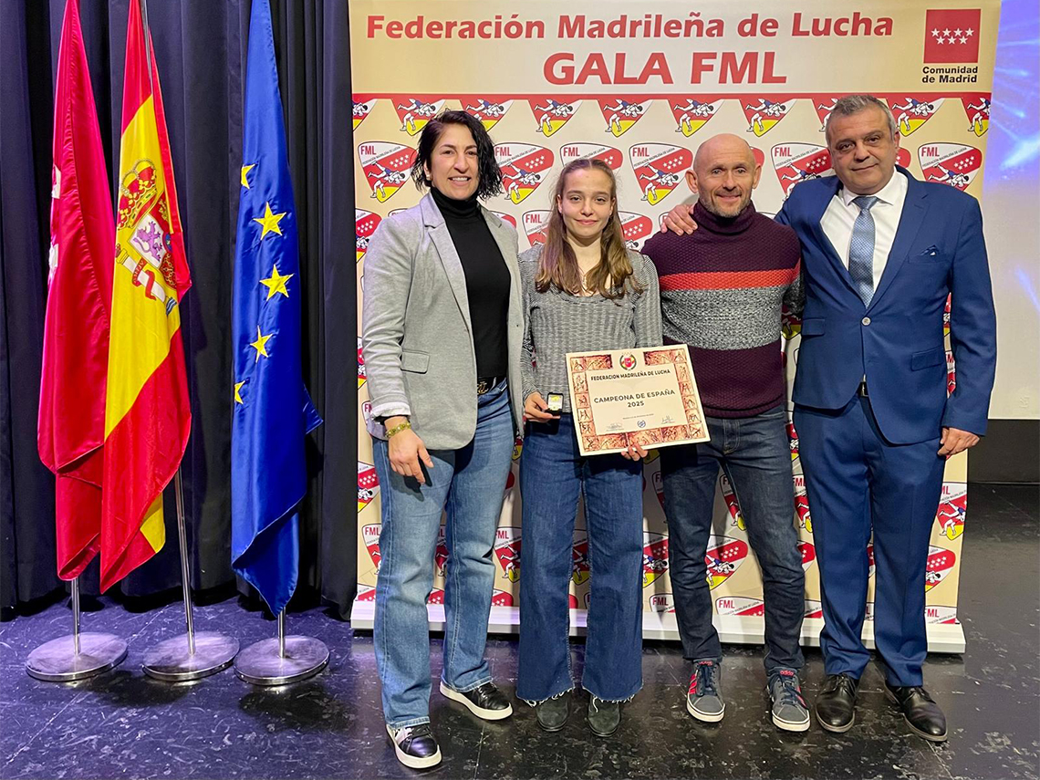 • Además, en la gala de la Federación Madrileña de Lucha también se reconoció la gran temporada de la torrejonera, Carolina Caro, que con solo 14 años quedó campeona de España Sub-16 -50 kilos. La deportista estuvo acompañada por José Manuel Ruiz García-Morales, presidente del Club de Lucha de Torrejón de Ardoz