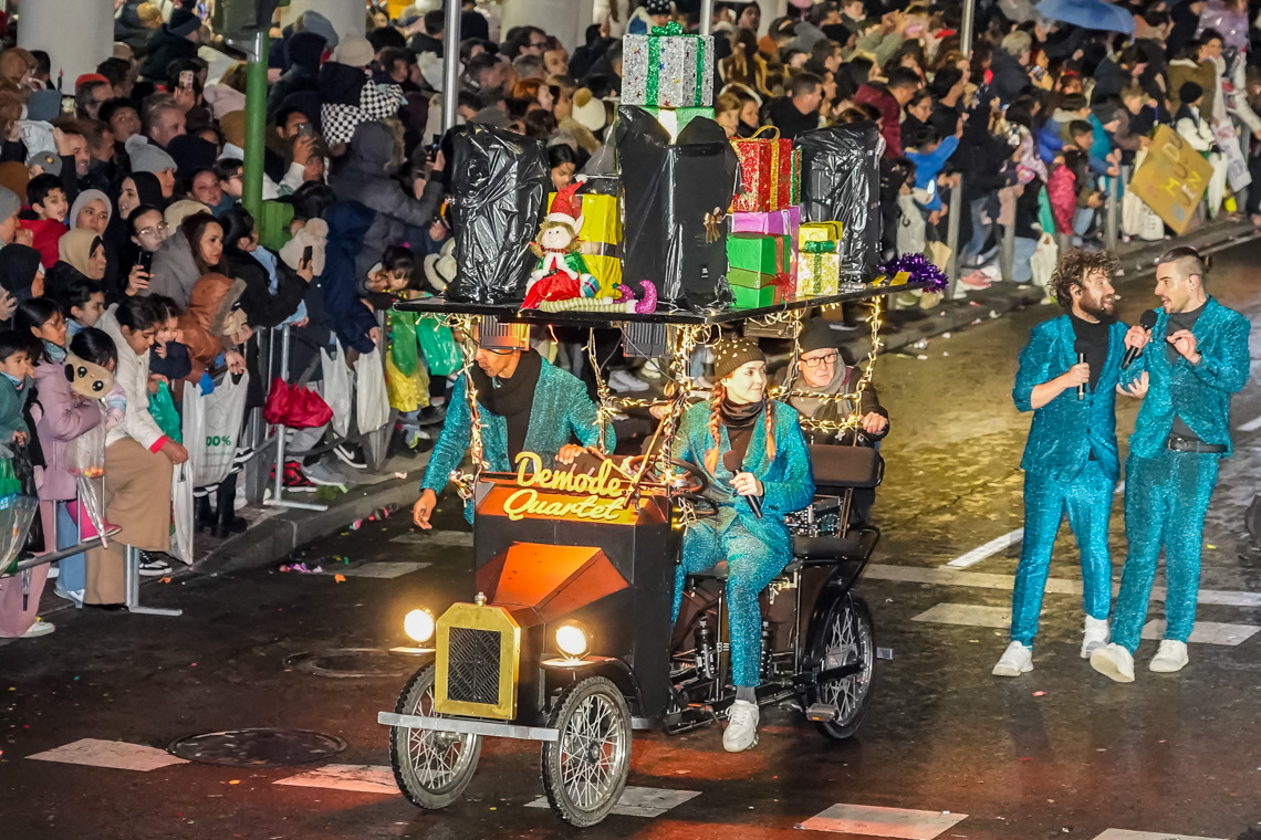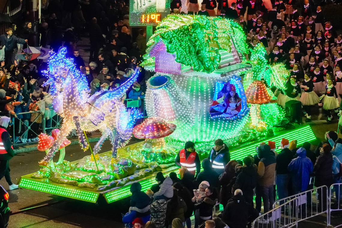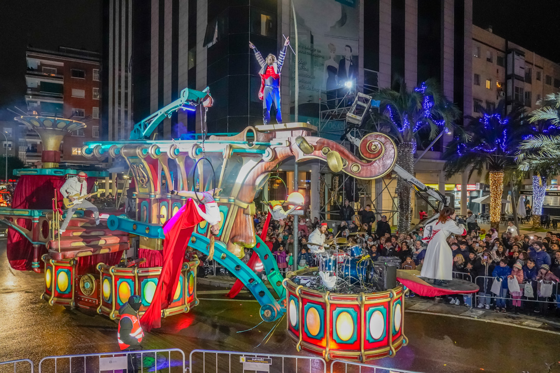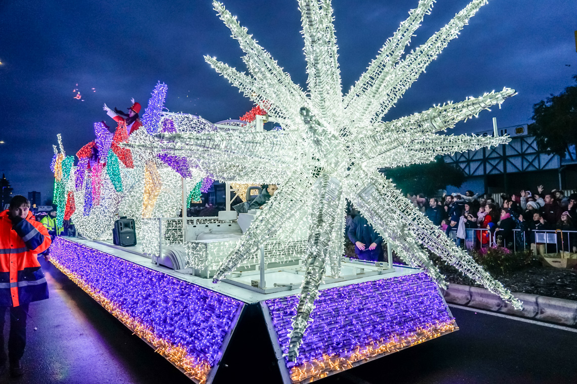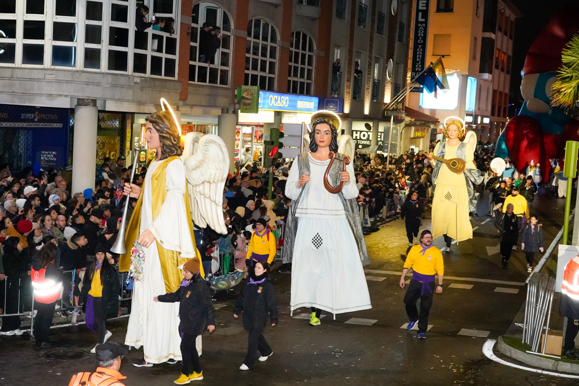 • Este año, la comitiva contó con 13 originales carrozas de temática infantil con los personajes de animación más conocidos, los entrañables personajes navideños torrejoneros los Guachis, y las tres espectaculares de los Reyes Magos, acompañadas por un total de 21 pasacalles y elementos de animación, contando este año con numerosos elementos aéreos luminosos, todos ellos de las mejores compañías artísticas nacionales e internacionales, acompañados de nuestros Ángeles Navideños Gigantes