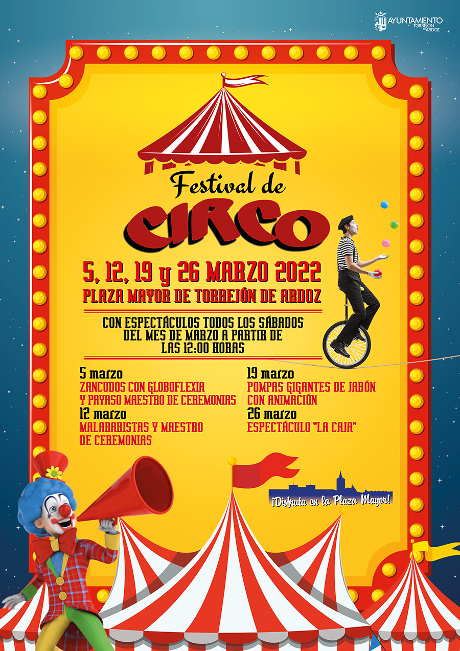 La Plaza Mayor de Torrejón de Ardoz acogerá todos los sábados de marzo a las 12:00 horas de la mañana el Festival de Circo. Esta nueva iniciativa, impulsada por el Ayuntamiento e incluida dentro del programa pionero “¡Disfruta en la Plaza Mayor!”, comienza mañana con zancudos con globoflexia y payaso maestro de ceremonias.