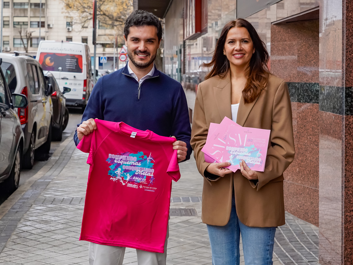La Semana de la Mujer de Torrejón de Ardoz se celebra este año bajo el lema “Rompiendo esquemas. Conquistando metas”. Para ello, el Ayuntamiento ha organizado un conjunto de actividades, que se centran en sensibilizar y promover una sociedad más justa, poniendo el foco en el ámbito deportivo para demostrar que el talento y la dedicación no entienden de género en un año que Torrejón ha sido designada Ciudad Europea del Deporte 2026, título que supone una oportunidad para utilizar el deporte como palanca de cambio. El alcalde, Alejandro Navarro Prieto, y la concejala de Igualdad y Festejos, María Eugenia Gil, han presentado esta mañana, en el Teatro Municipal José María Rodero, la amplia programación que tiene como objetivo contribuir a romper los estereotipos de género que limitan a las mujeres y perpetúan desigualdades. Toda la programación se podrá consultar PULSANDO AQUÍ.