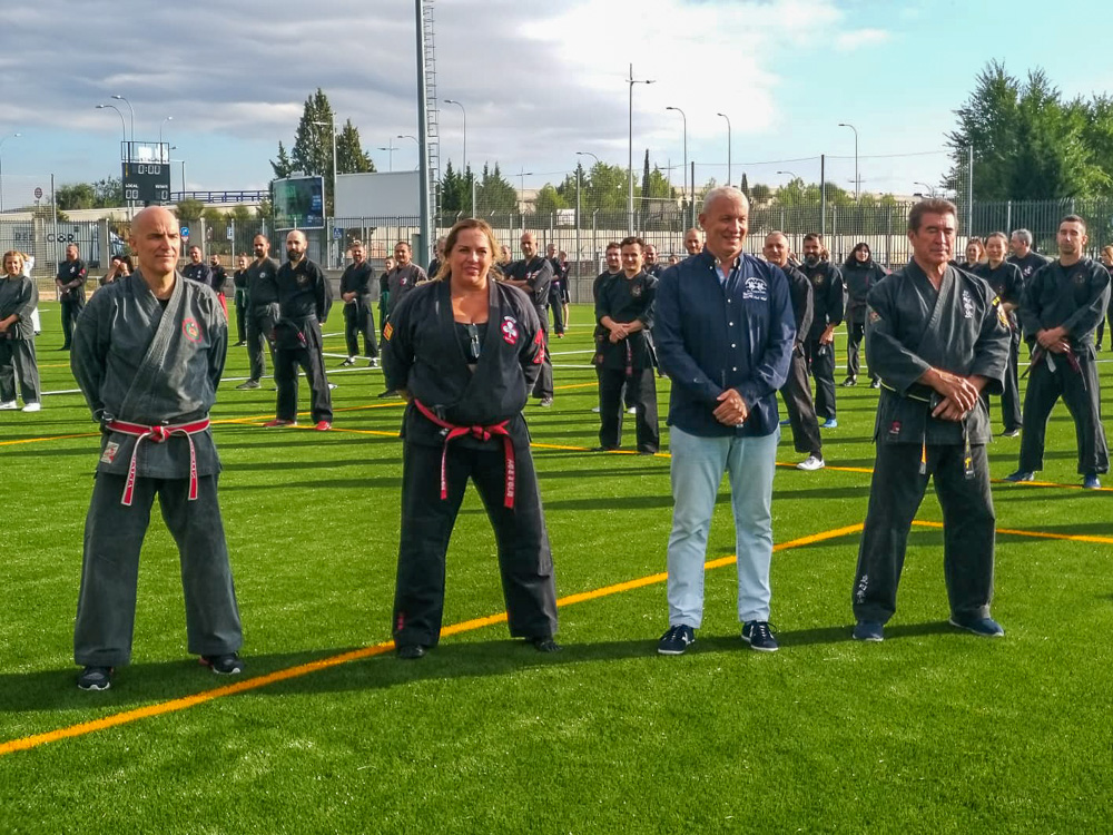 El campo de fútbol de la C.D. Juan Antonio Samaranch acogió el pasado 25 de septiembre un seminario nacional de artes marciales dirigido por la torrejonera Cristina Álvarez, tricampeona del mundo de defensa personal. El acto contó con la presencia del concejal de Deportes y Movilidad, José Miguel Martín Criado, como muestra de apoyo del Ayuntamiento.