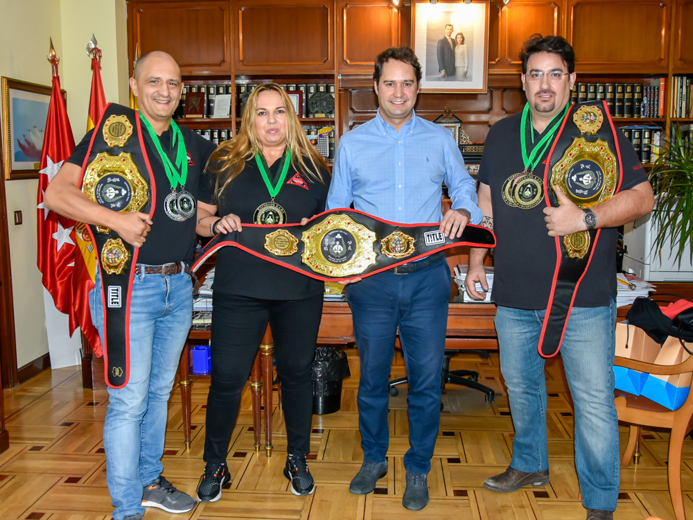 El alcalde, Ignacio Vázquez, recibió ayer en el Ayuntamiento a la torrejonera Cristina Álvarez, tras revalidar el cinturón de Campeón de Campeones en el World Championship celebrado el pasado mes de junio en Las Vegas, donde también su equipo de kajukenbo compuesto por Juan Antonio Martínez, José Caballero y David Rodríguez, consiguió varios títulos de campeones del mundo en distintas divisiones de combate, armas o defensa personal, entre otras.