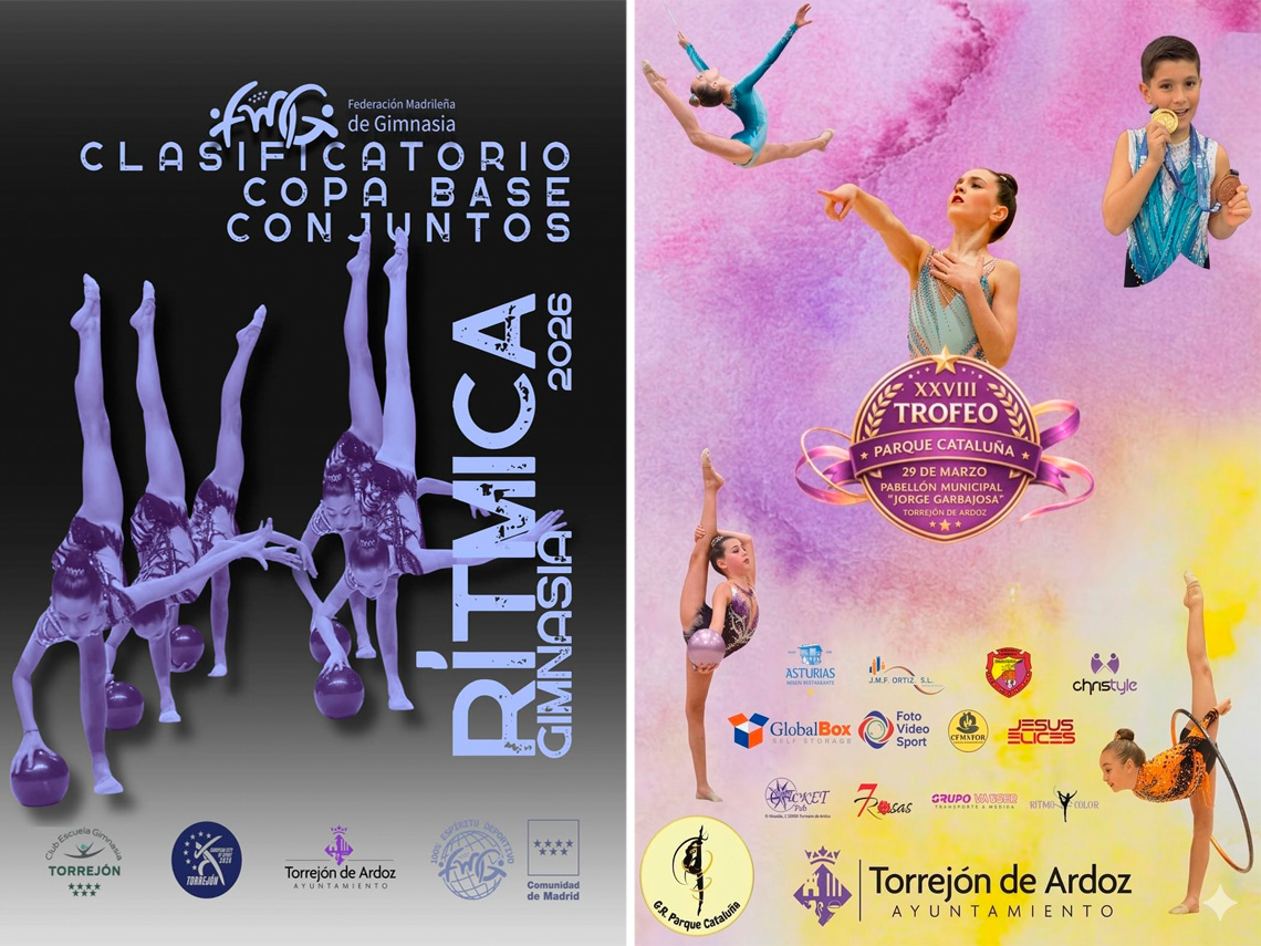Además, este fin de semana también se celebran dos competiciones destacadas de gimnasia rítmica en el Pabellón Jorge Garbajosa. Mañana, sábado, tendrá lugar la 1ª Fase de la Copa Madrileña de Conjuntos, el Clasificatorio para el Campeonato de España de la Copa Base de Conjuntos y el Trofeo Primavera, organizado por la Federación Madrileña de Gimnasia, con la colaboración del Club Escuela de Gimnasia Rítmica Torrejón y del Ayuntamiento. Por su parte, el domingo, 29 de marzo, será el turno del tradicional “Trofeo Parque Cataluña” que organiza este club torrejonero y que este año llega a su 28ª edición. Ambos campeonatos se disputarán en jornadas de mañana y tarde.