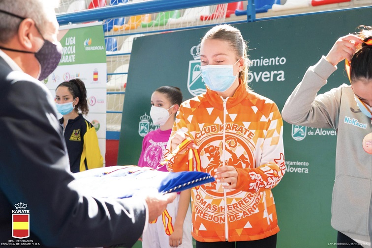 Torrejón de Ardoz, 17 de noviembre de 2020. Por otra parte, el Club Karate Tomás Herrero también fue protagonista en el Campeonato de Madrid en categoría Junior y Cadete que se disputó el pasado 31 de octubre en Collado Mediano. En este torneo, cinco de sus competidores se subieron al podio. Diego Palop se colgó la medalla de oro en Junior -76kg. En este mismo peso y categoría, Víctor Ríos fue bronce y Verónica Horcajuelo, plata en -48kg. Las otras dos medallas fueron en Cadete. Hiro Monzino en -63kg. y Aarón Herrero en -57kg. se colgaron el bronce completando el gran torneo de los torrejoneros.