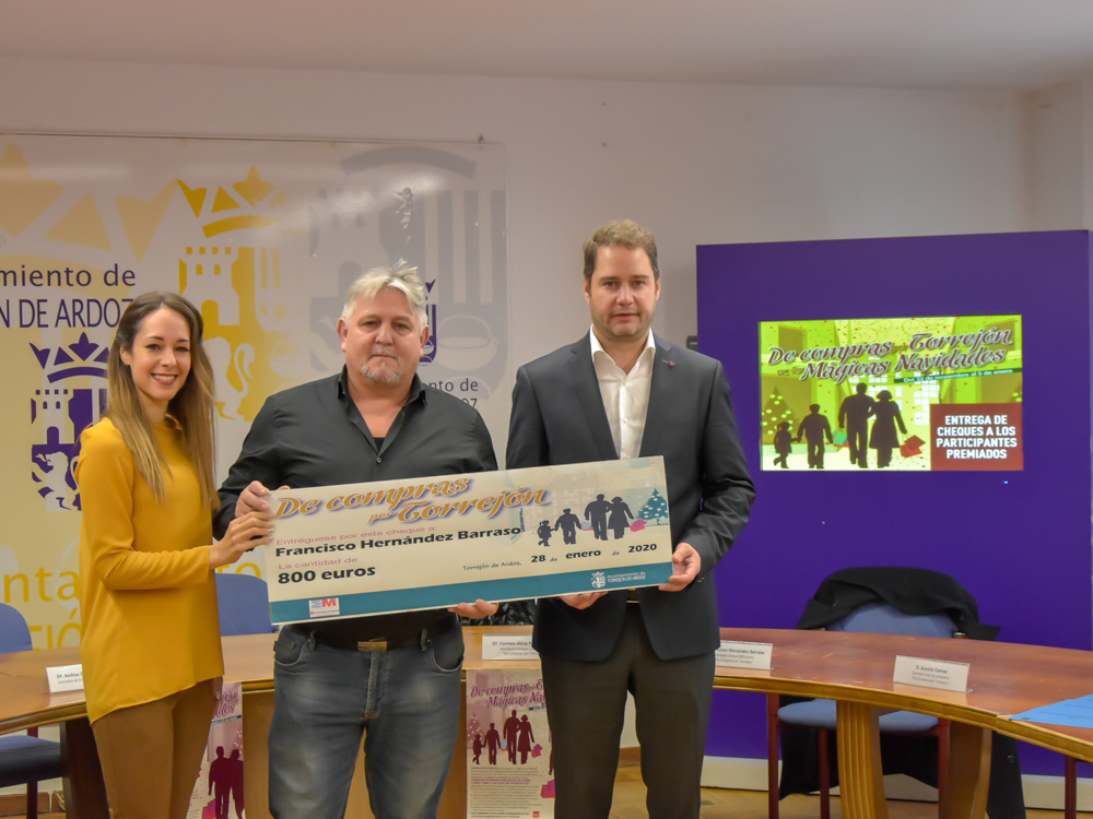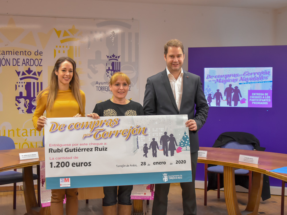 Los ganadores del concurso “De compras por Torrejón en las Mágicas Navidades” han recibido hoy sus cheques regalo de una campaña que ha incentivado el consumo en los pequeños y medianos comercios de la ciudad