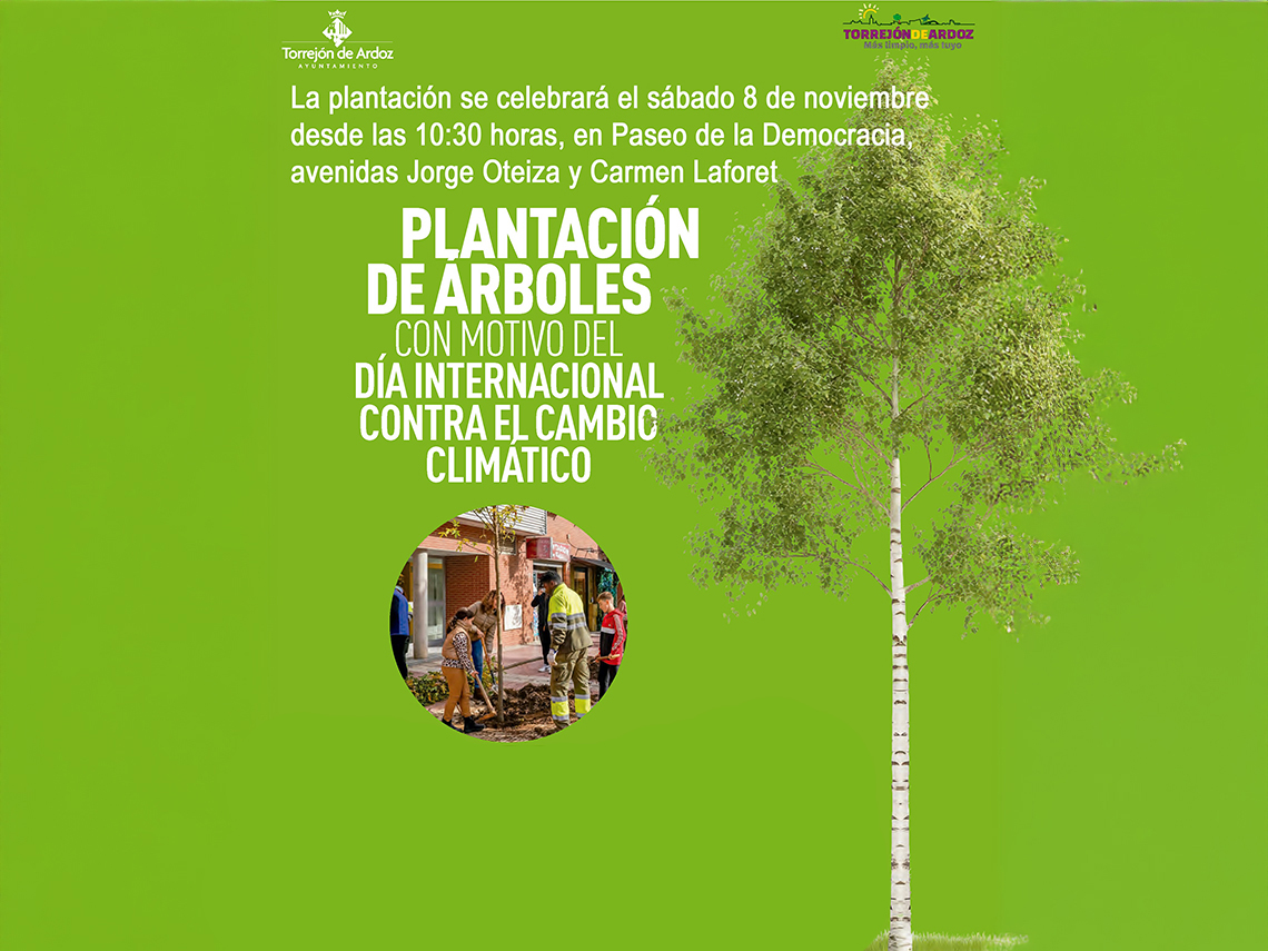 Torrejón de Ardoz, 7 de noviembre de 2025. Se celebrará a partir de las 10:30 horas, en Paseo de la Democracia, avenidas Jorge Oteiza y Carmen Laforet, donde se plantarán nuevos árboles, que proporciona el Ayuntamiento de Torrejón de Ardoz, principalmente en los alcorques vacíos de toda esta zona.