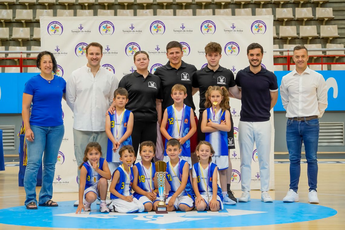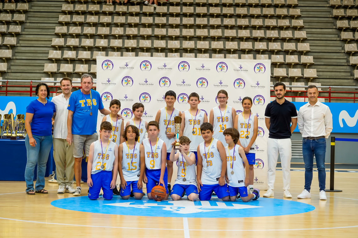 Torrejón de Ardoz, 13 de junio de 2025. El pasado domingo, en el Pabellón Jorge Garbajosa, tuvo lugar la entrega de premios a los mejores equipos de cada categoría en fútbol sala, fútbol 7, baloncesto y voleibol, y a los mejores jugadores, en el caso del tenis. El acto contó con la presencia del alcalde, Alejandro Navarro Prieto, y de otros miembros de la corporación municipal.