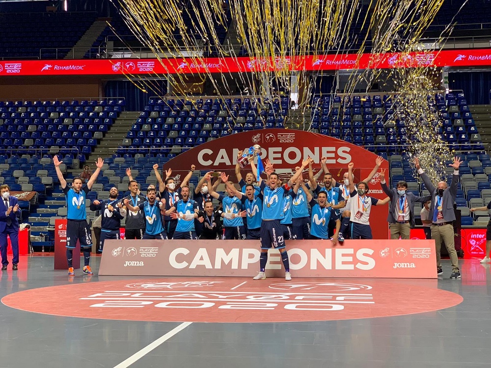 Movistar Inter FS se ha proclamado campeón de la Liga Nacional de Fútbol Sala por 14ª vez en su historia en una apretada final del playoff ante el Viña Albali Valdepeñas, conjunto entrenado por el torrejonero David Ramos. La final, disputada ayer en el Palacio José María Martín Carpena de Málaga, terminó con empate a tres en el marcador, un resultado que les valía a los interistas ya que cuando se tuvo que parar la competición debido a la crisis del coronavirus, iban líderes en la clasificación.