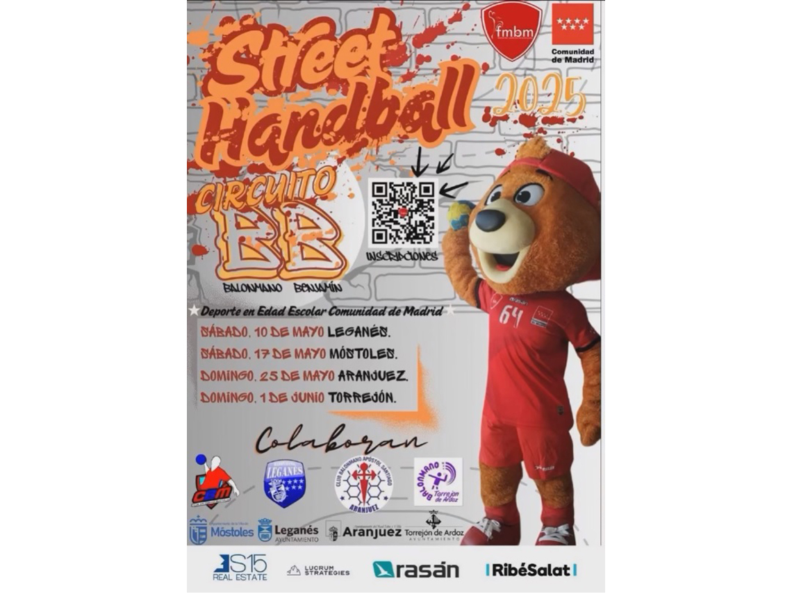 • Por último, también el domingo llega a Torrejón de Ardoz el Circuito de Balonmano Benjamín “Street Handball”, organizado por la Federación Madrileña de Balonmano, con la colaboración del Ayuntamiento y del Club Balonmano Torrejón, que busca promocionar la práctica de este deporte entre los niños y niñas