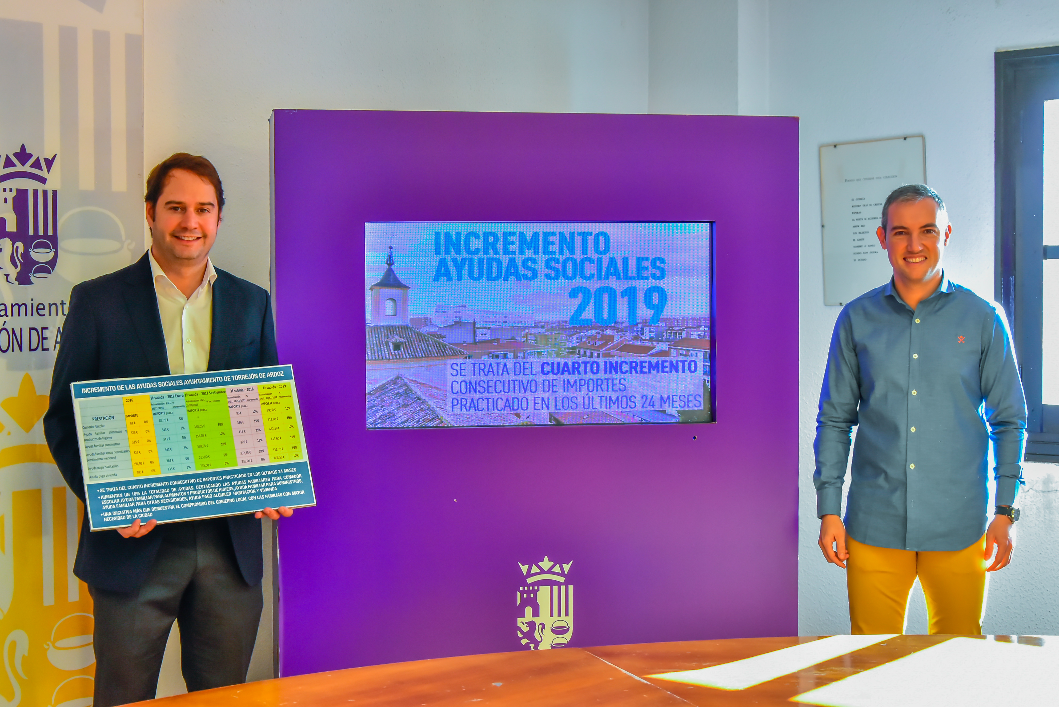 • “Se trata de la cuarta subida de importes de las ayudas sociales realizada a lo largo de los dos últimos años demostrando nuestro compromiso con las familias con mayor necesidad de la ciudad. Además de estas ayudas, el Gobierno local sigue apoyando a las familias con menores recursos con otras medidas como la exención en el pago del IBI a aquellas que cuenten con todos sus miembros desempleados durante al menos 10 meses en el año natural inmediatamente anterior (siendo la única ciudad de España que lleva a cabo esta medida), la bonificación de hasta el 90% en el mismo a las familias numerosas, el fraccionamiento sin intereses del pago de tributos municipales para los vecinos que están en situación de desempleo y la exención del impuesto de plusvalía municipal a los afectados por desahucios, medida de la que Torrejón de nuevo ha sido ciudad pionera en la Comunidad de Madrid”, destaca Ignacio Vázquez, alcalde de la ciudad